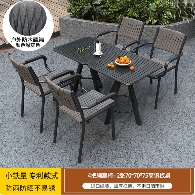 • 70 철판 사각 테이블 2개와 등나무 의자 4개