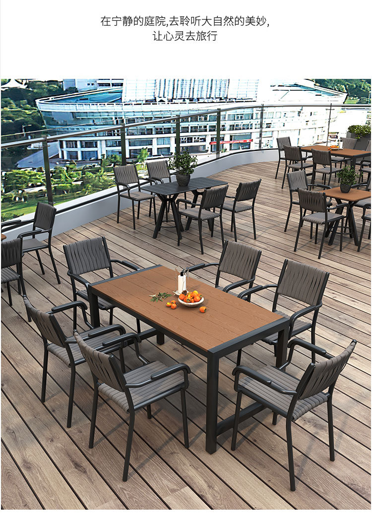 야외 테이블과 의자, 안뜰 레저 플라스틱 목재 식탁과 의자 조합, 야외 야외 발코니 테라스 야외 가구, 부식 방지 목재스토어 가기
