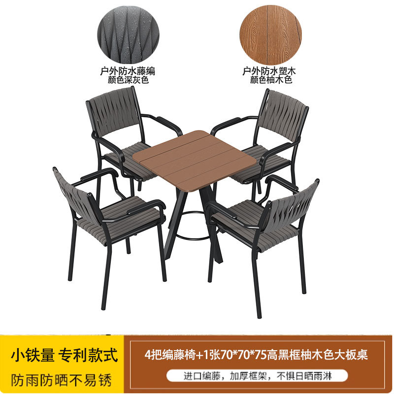 • 70 플라스틱 나무 정사각형 테이블 1개와 등나무 의자 4개