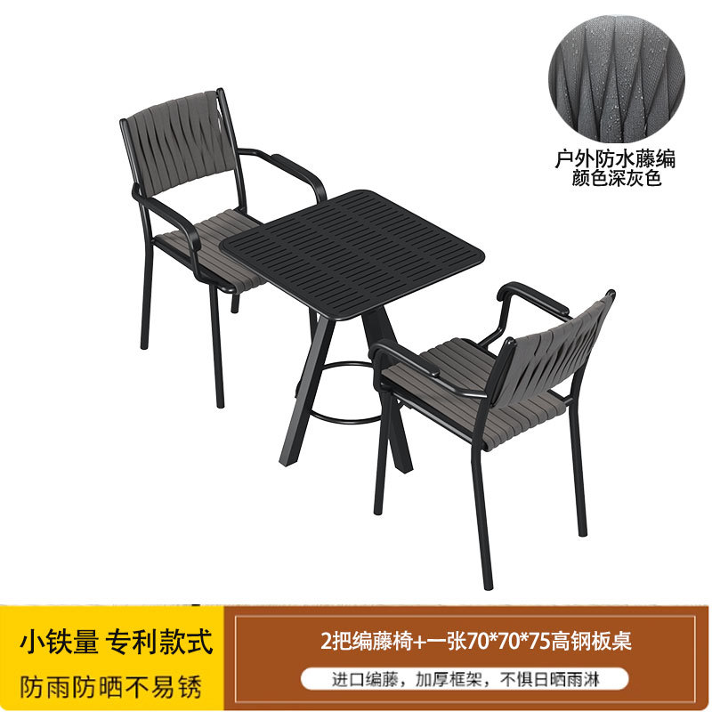 • 70 강철 사각 테이블 1개와 등나무 의자 2개