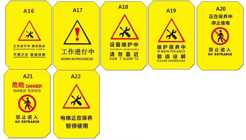 • 위험 - 엘리베이터 정기 유지보수 중 노란색