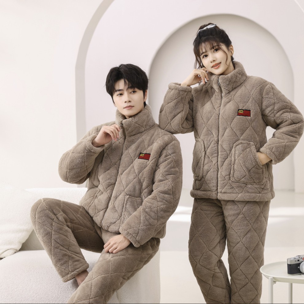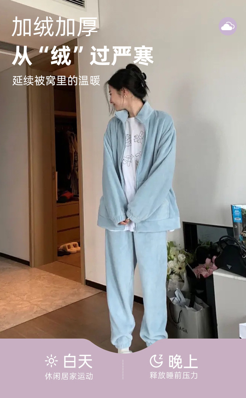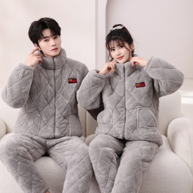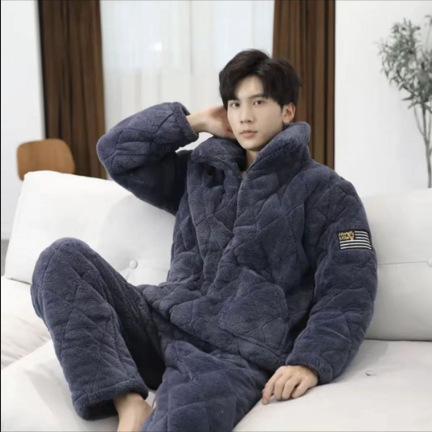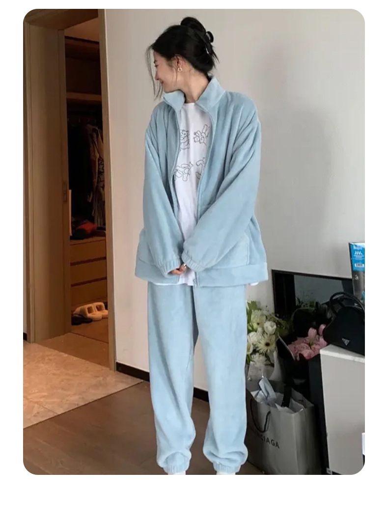 여성용 산호 벨벳 잠옷은 따뜻한 홈웨어 세트로 착용할 수 있으며, 남성용은 두꺼운 벨벳으로 스포츠 요가에도 적합합니다.