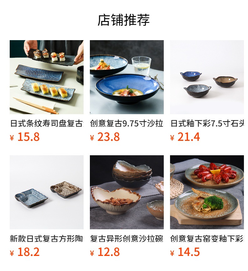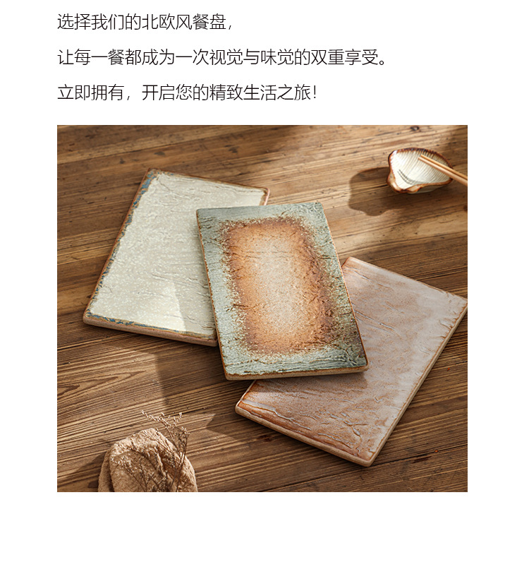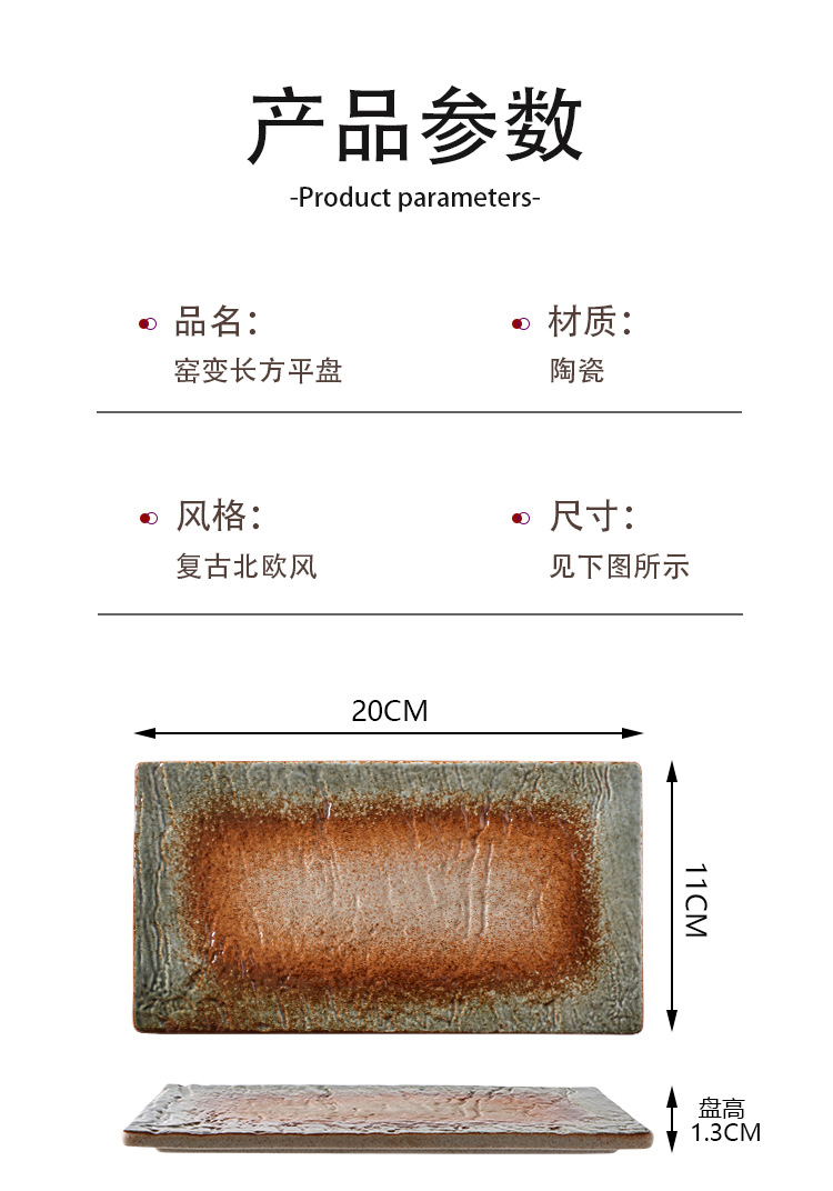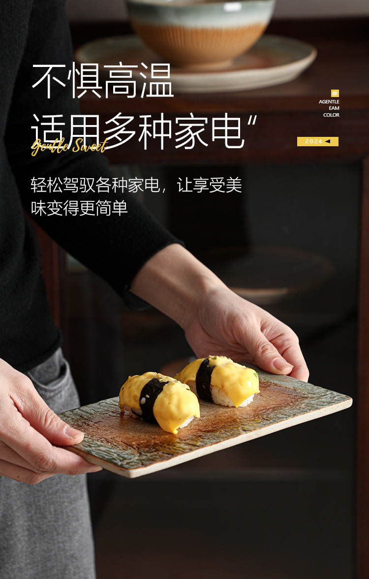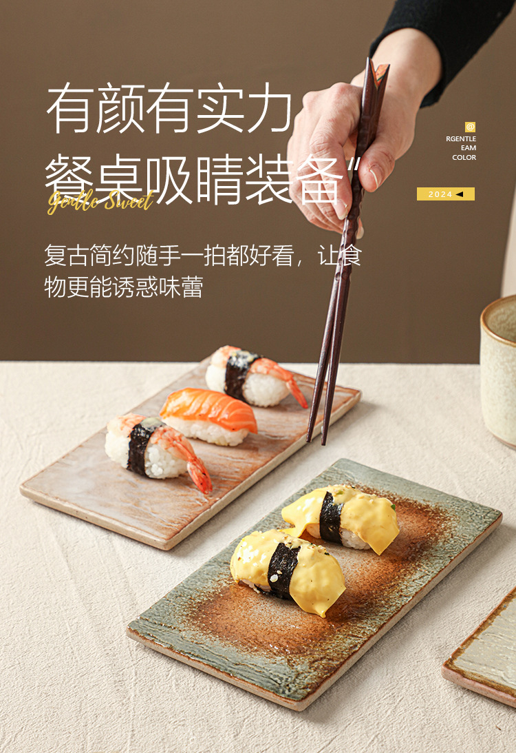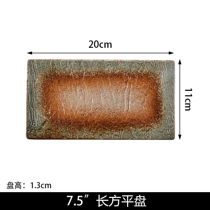 [국경 간 모델] 일본 도자기 식기 직사각형 평판 스시 접시 가정용 고가치 복고풍 가마 접시스토어 가기