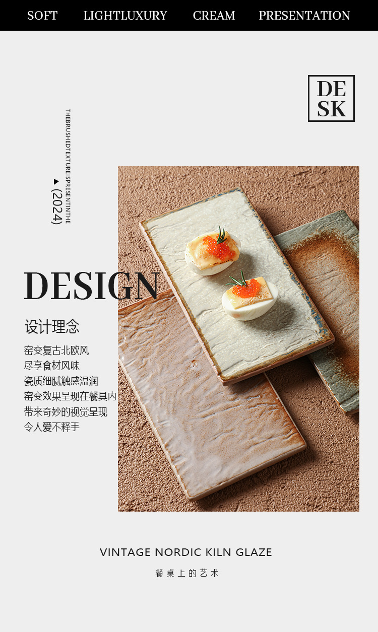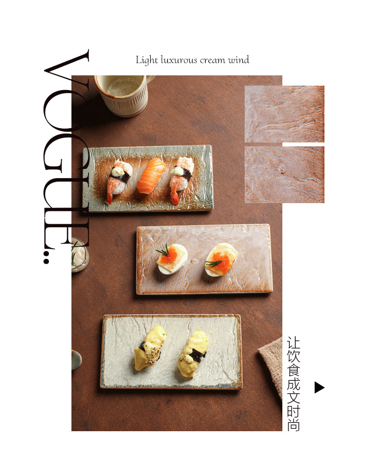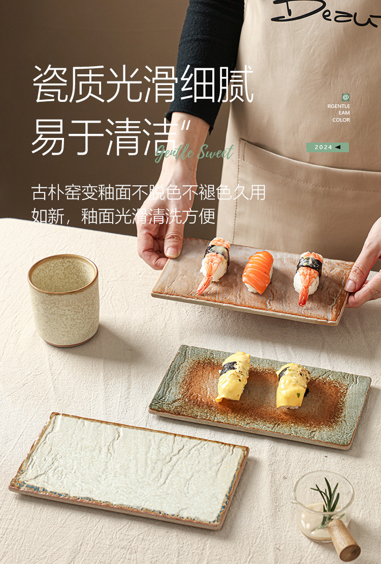 [국경 간 모델] 일본 도자기 식기 직사각형 평판 스시 접시 가정용 고가치 복고풍 가마 접시