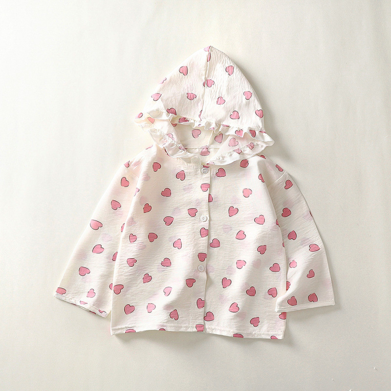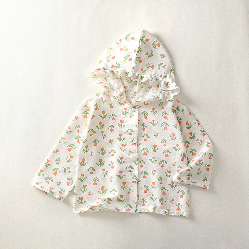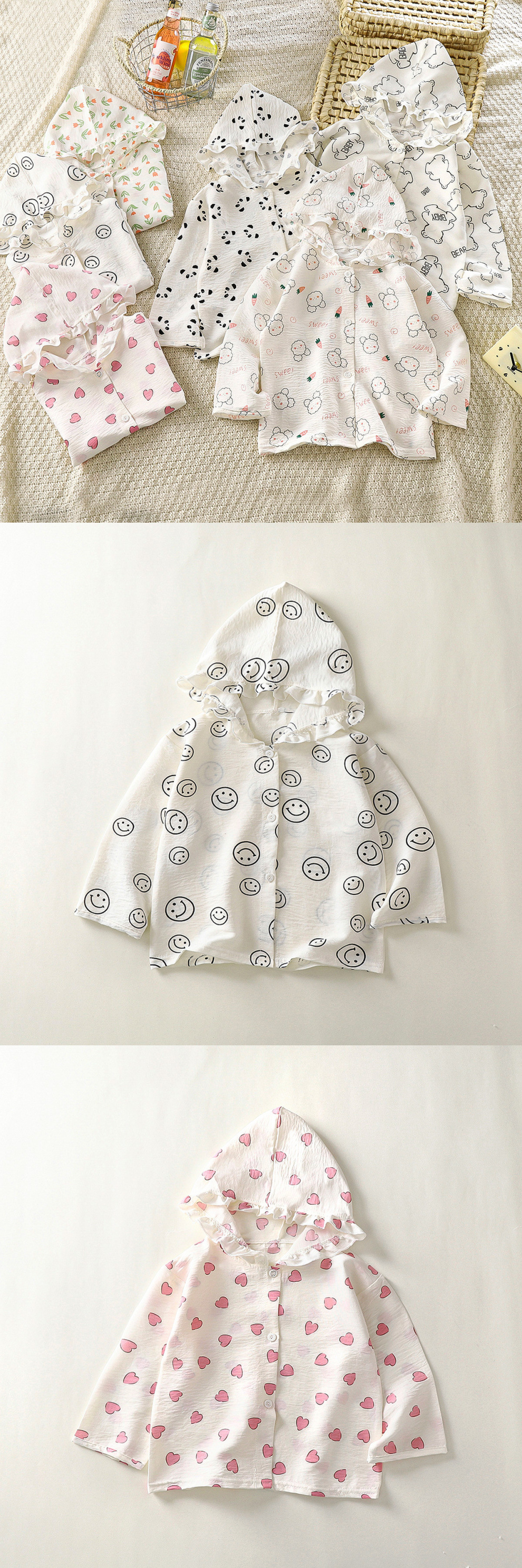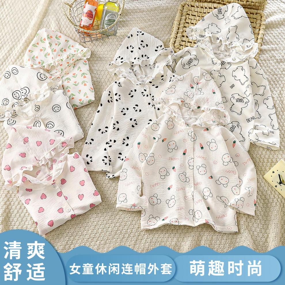 여자 캐주얼 얇은 재킷 2024 후드 가디건 새로운 패션 버튼 어린이 스타일 여자 태양 보호 의류스토어 가기