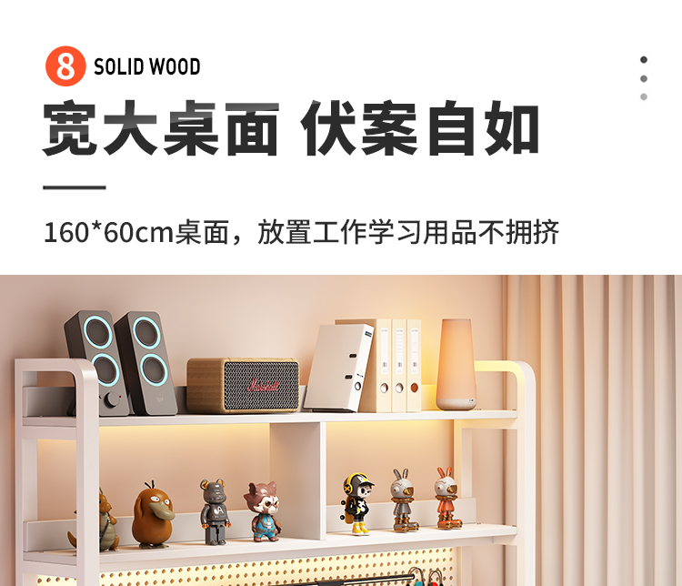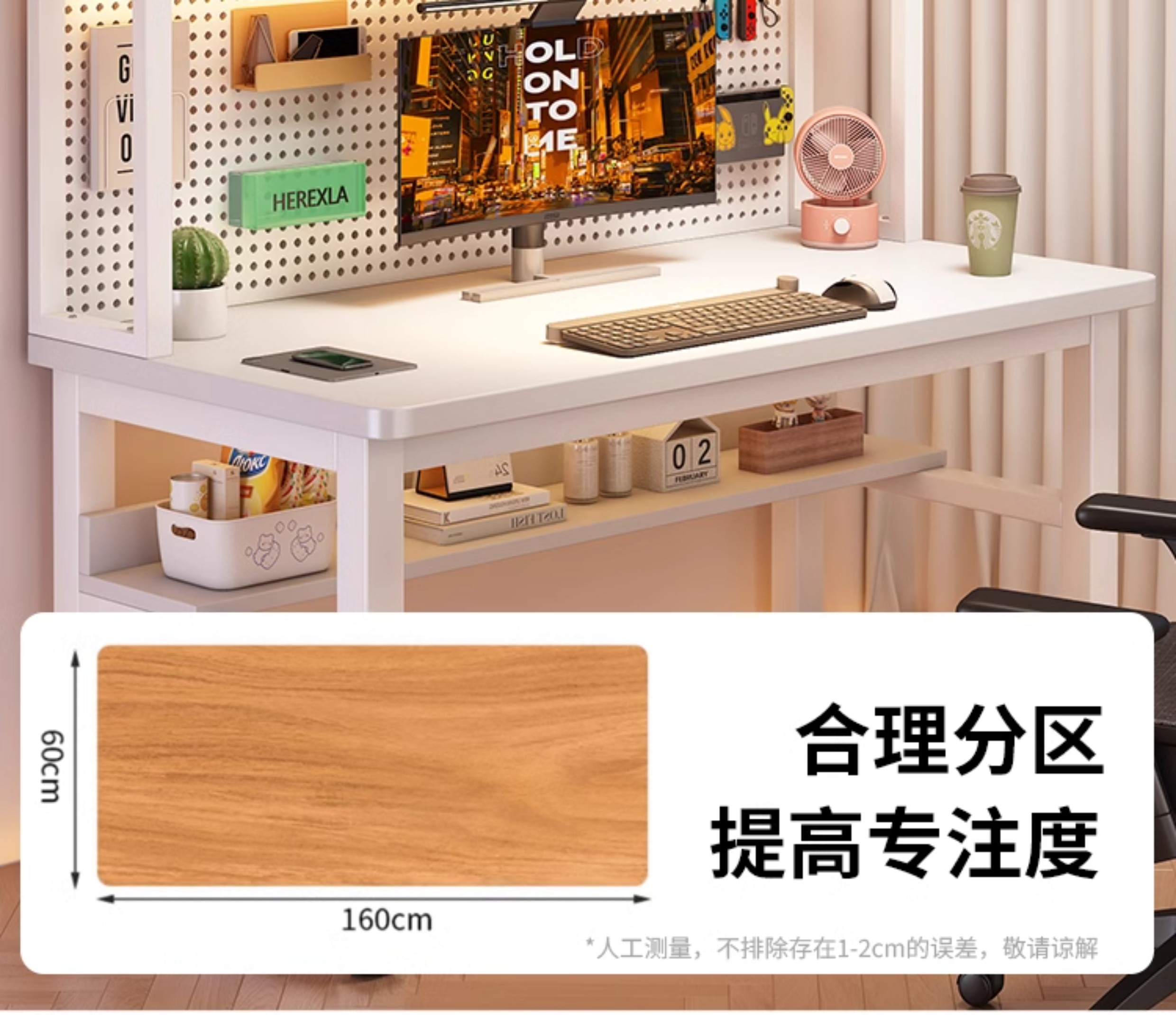 • [오크 데스크탑 + 화이트 프레임] 두꺼운 타공판 컴퓨터 책상 160*60 [안정성을 높이기 위해 강화된 크로스바]