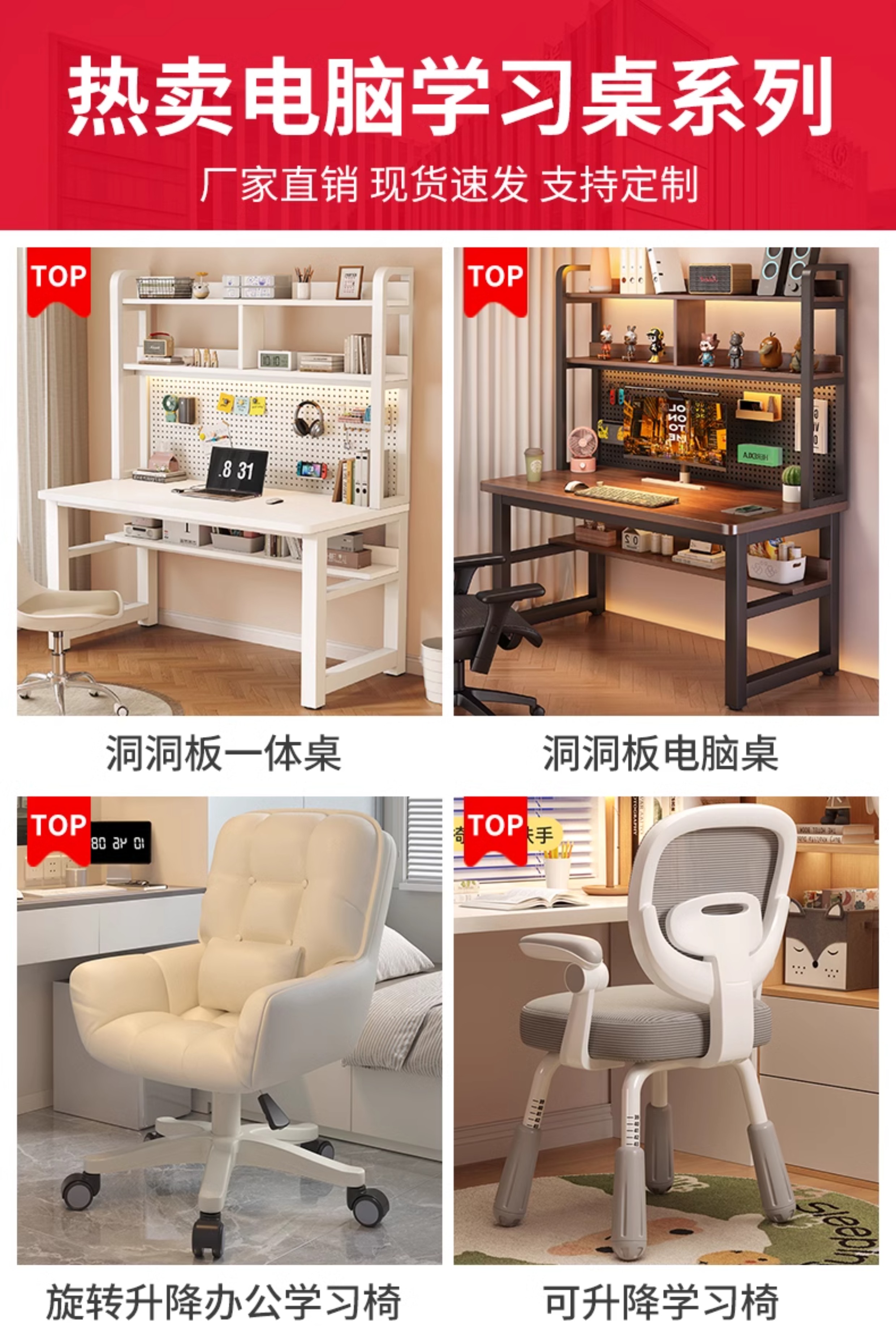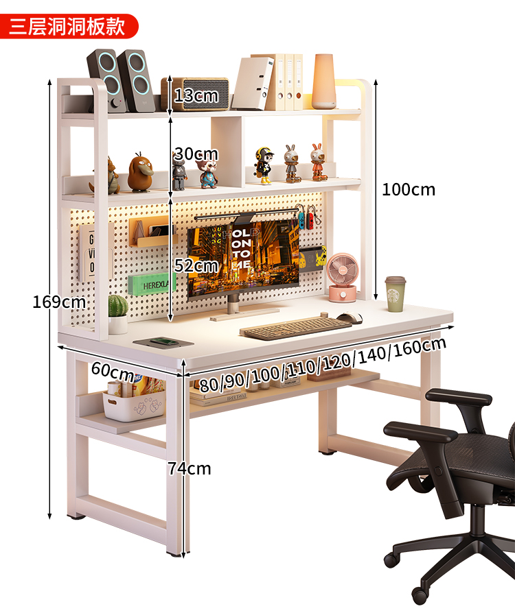 • [흰색 데스크탑 + 흰색 프레임] 두꺼운 천공 보드 컴퓨터 책상 10*10 사용자 정의 가능 [크기 및 색상 공동 고객 지원]