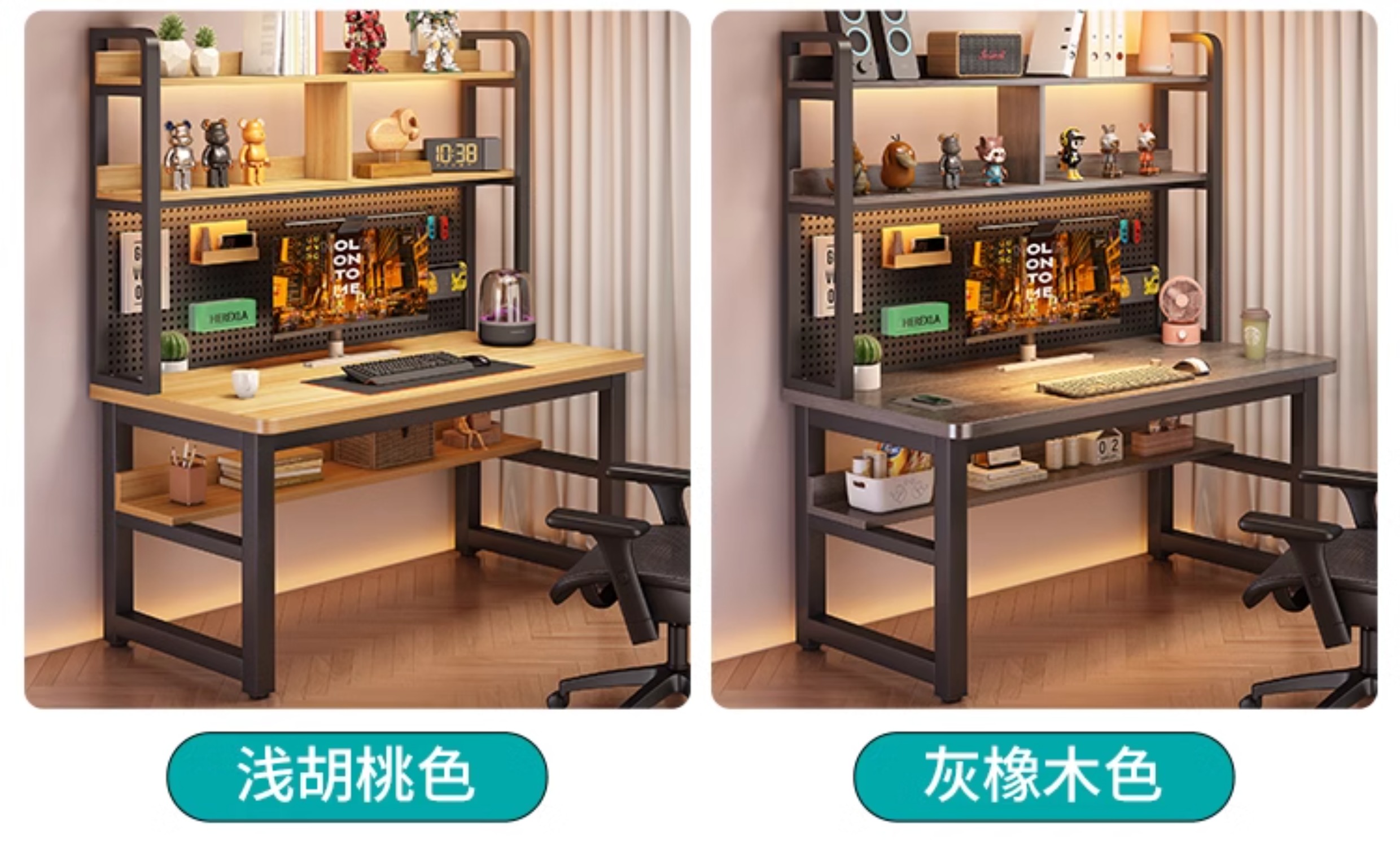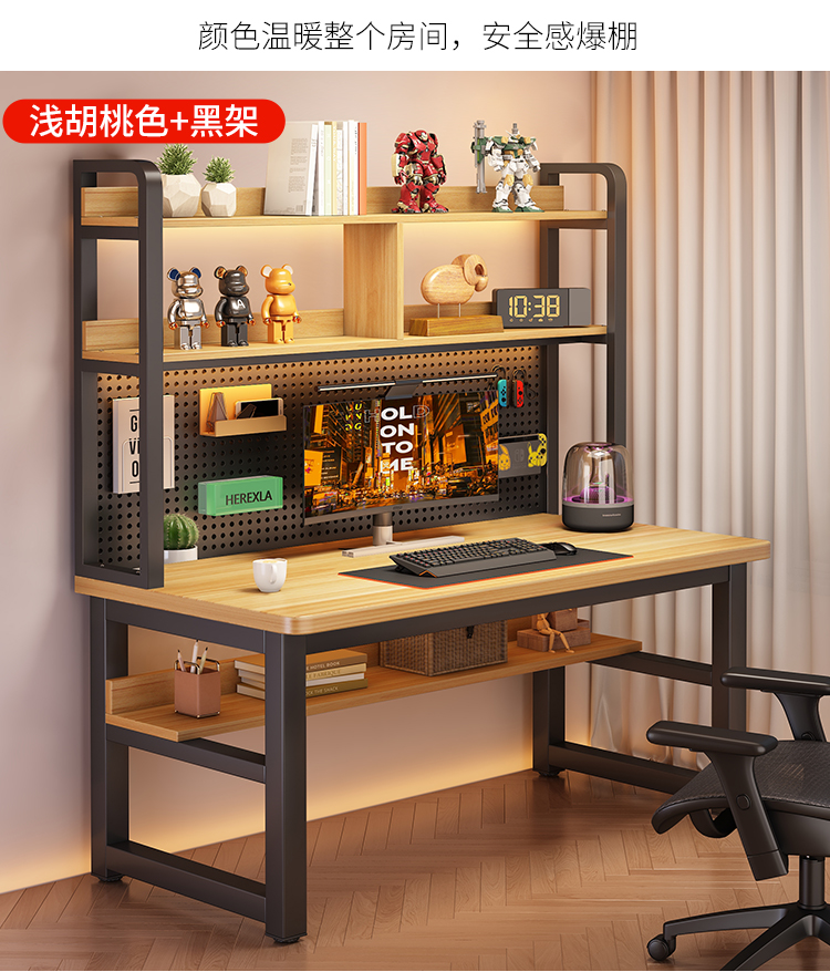 • [월넛 데스크탑 + 블랙 프레임] 두꺼운 타공판 컴퓨터 책상 140*60 [안정성을 높이기 위해 강화된 크로스바]