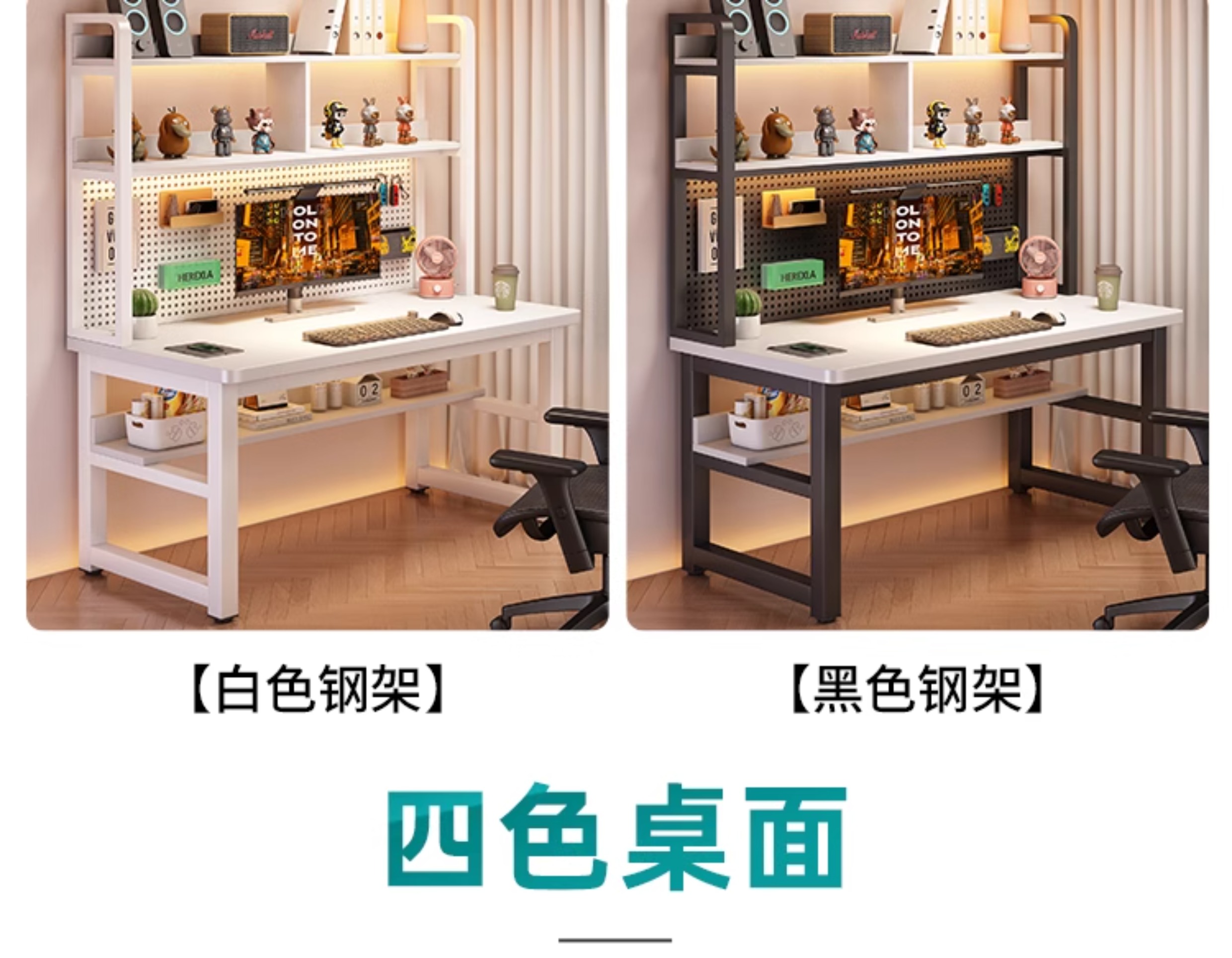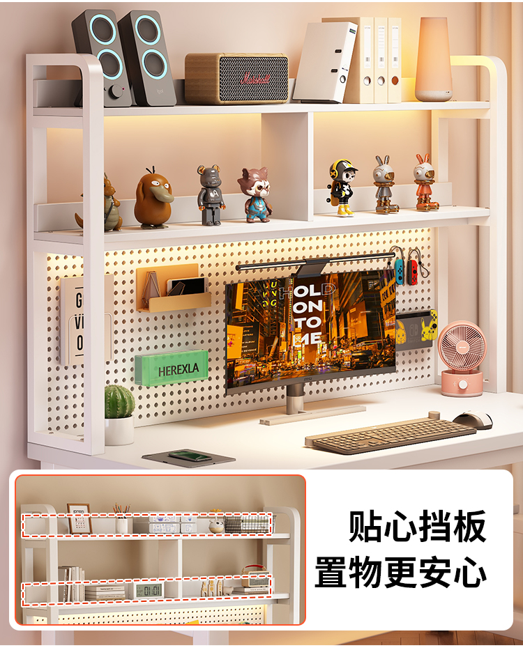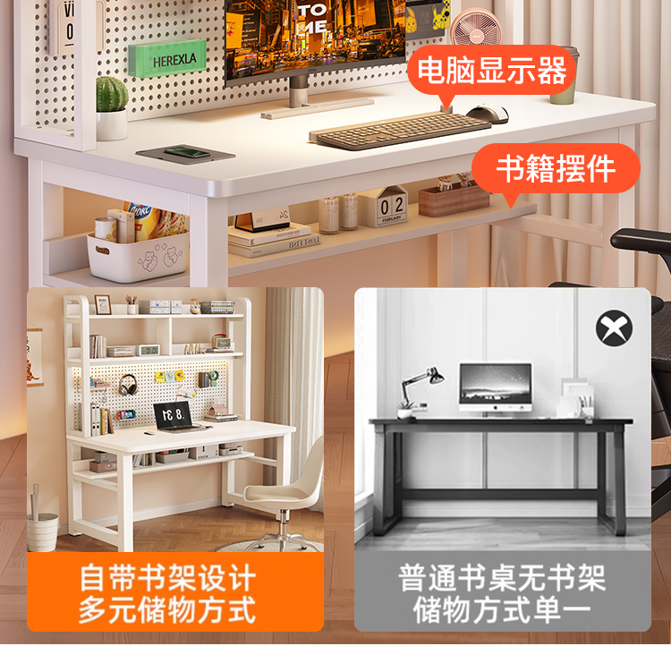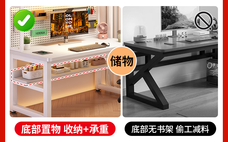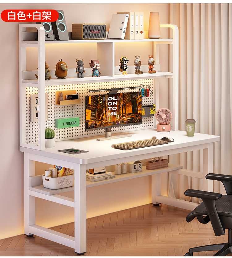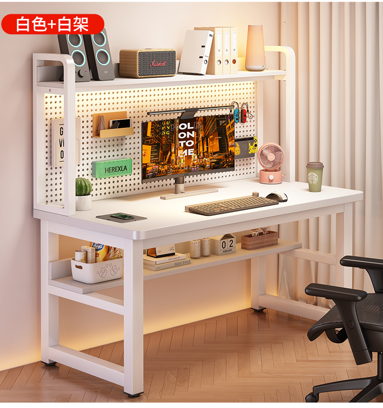 • [화이트 데스크탑 + 화이트 프레임] 두꺼운 타공판 컴퓨터 책상 140*60 [안정성을 높이기 위해 강화된 크로스바]