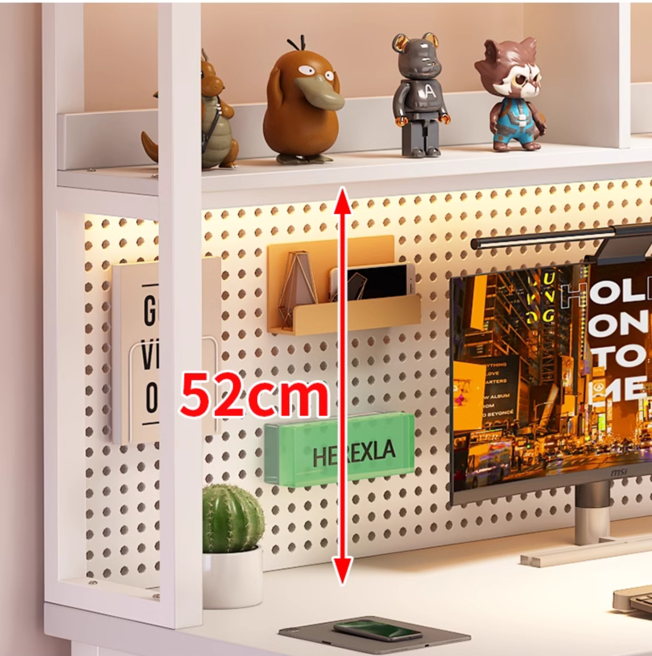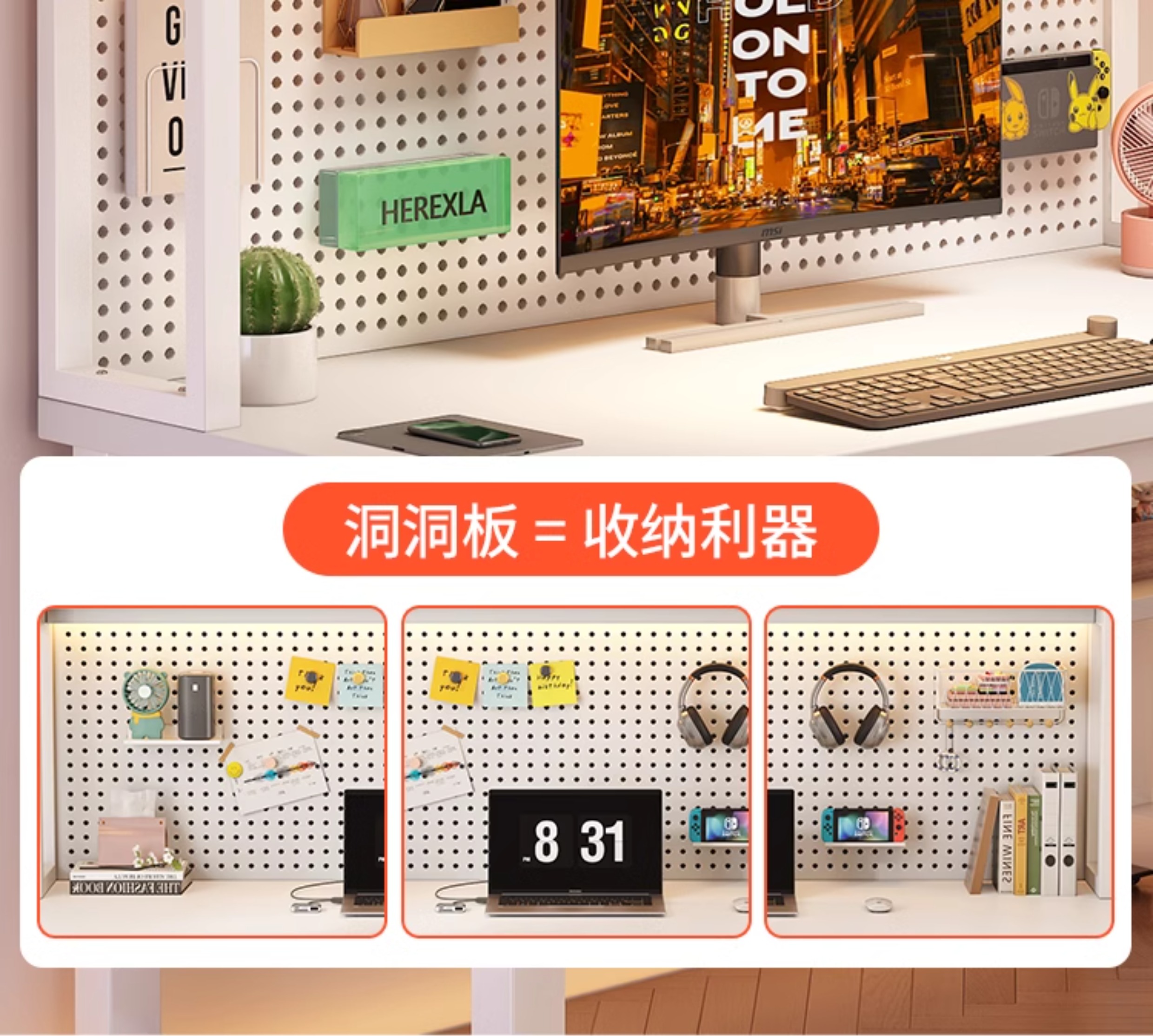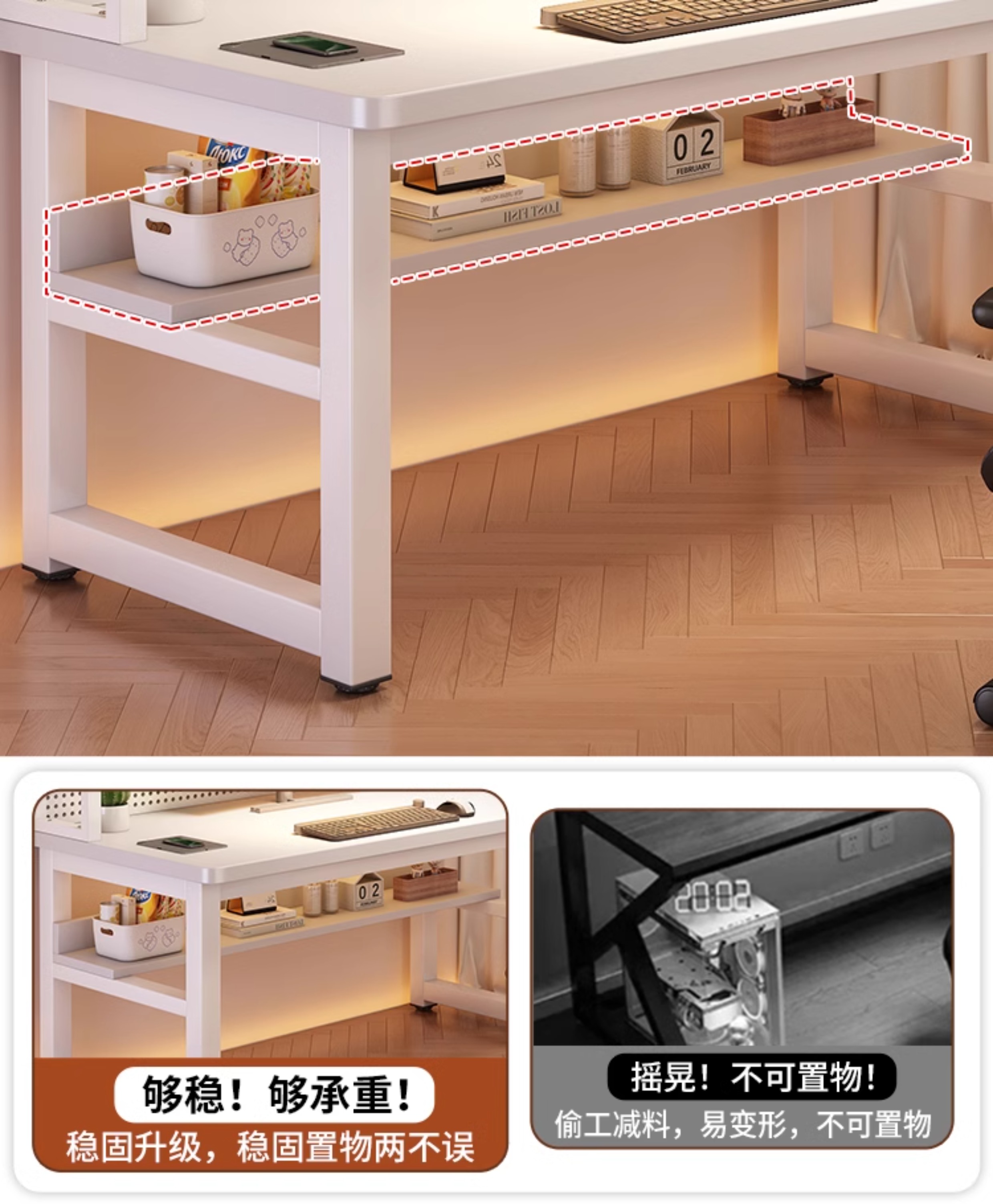 • [화이트 데스크탑 + 화이트 프레임] 두꺼운 타공판 컴퓨터 책상 140*60 [안정성을 높이기 위해 강화된 크로스바]