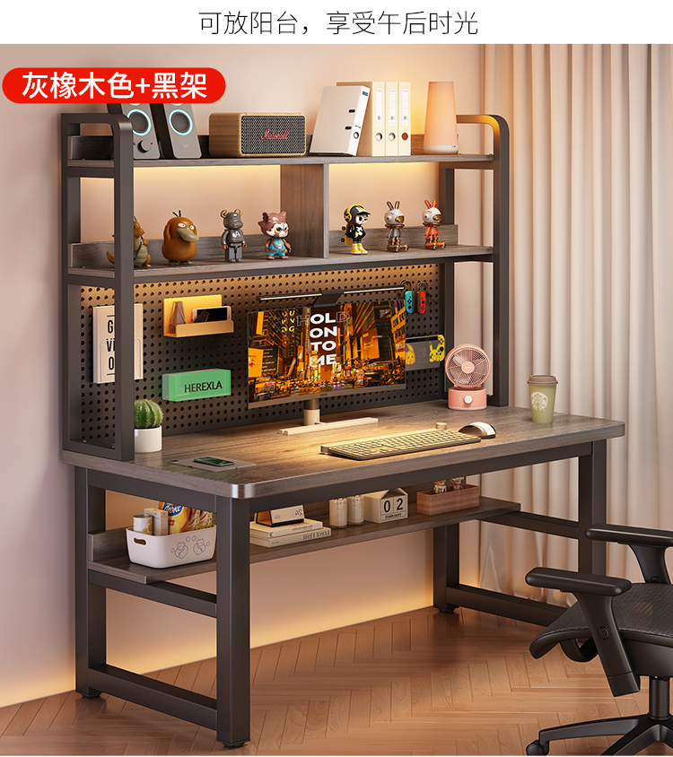 • [오크 데스크탑 + 블랙 프레임] 두꺼운 타공판 컴퓨터 책상 120*60 [안정성을 높이기 위해 강화된 크로스바]