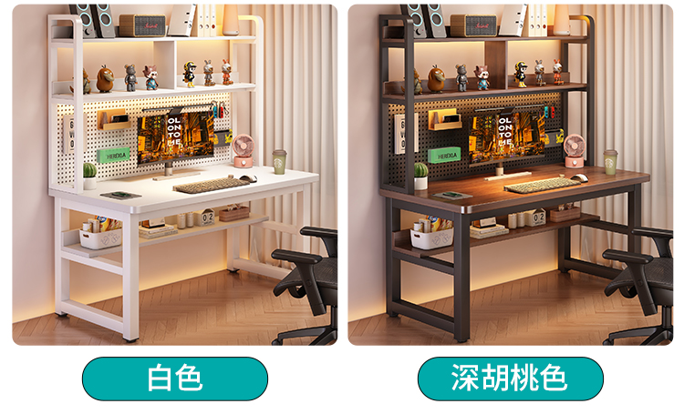 • [월넛 데스크탑 + 화이트 프레임] 두꺼운 타공판 컴퓨터 책상 140*60 [안정성을 높이기 위해 강화된 크로스바]