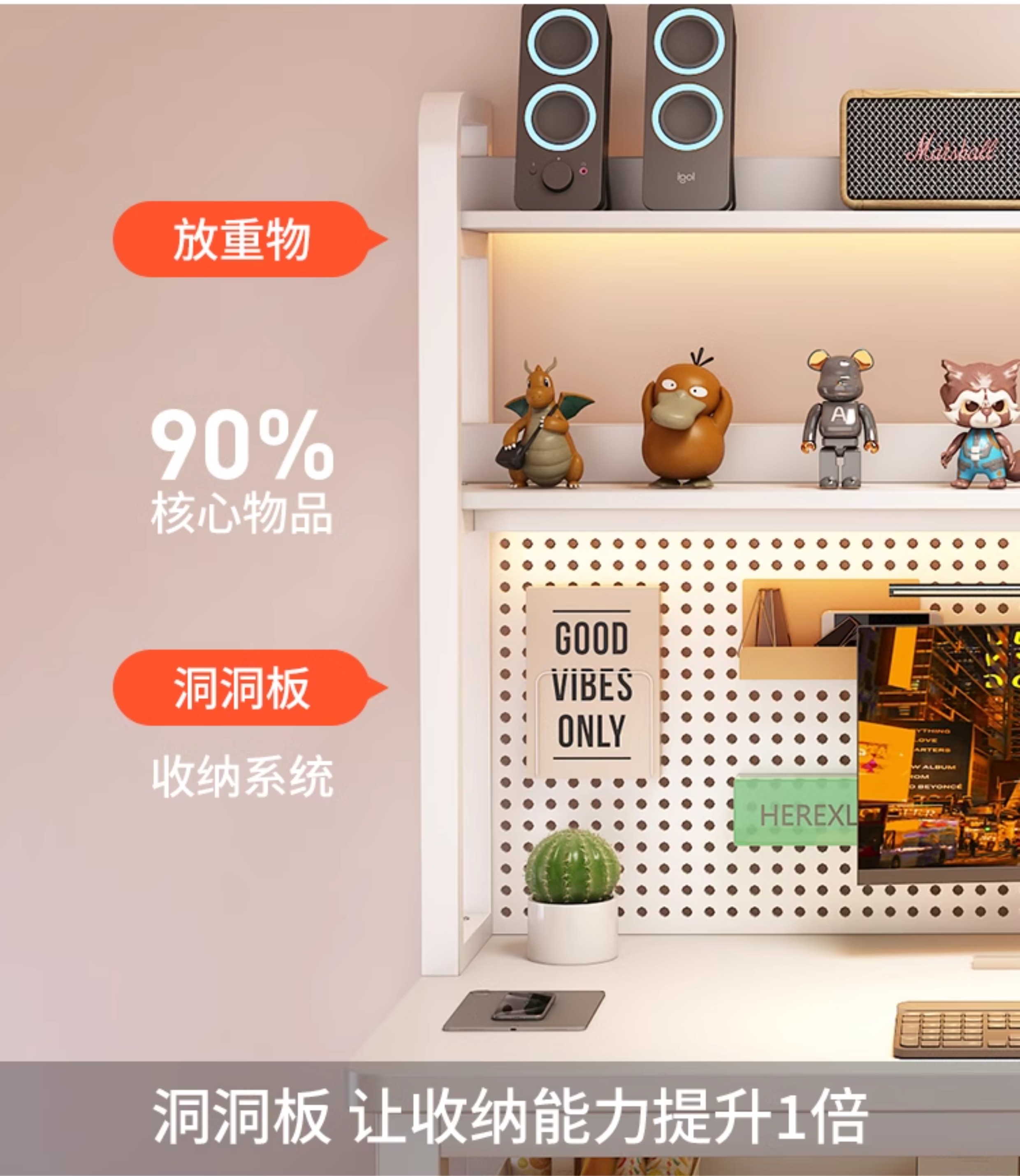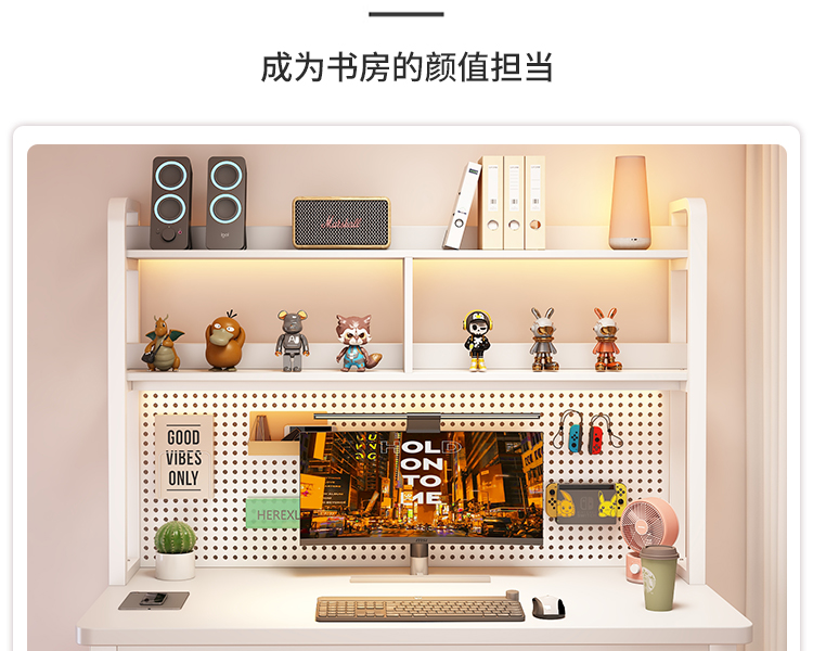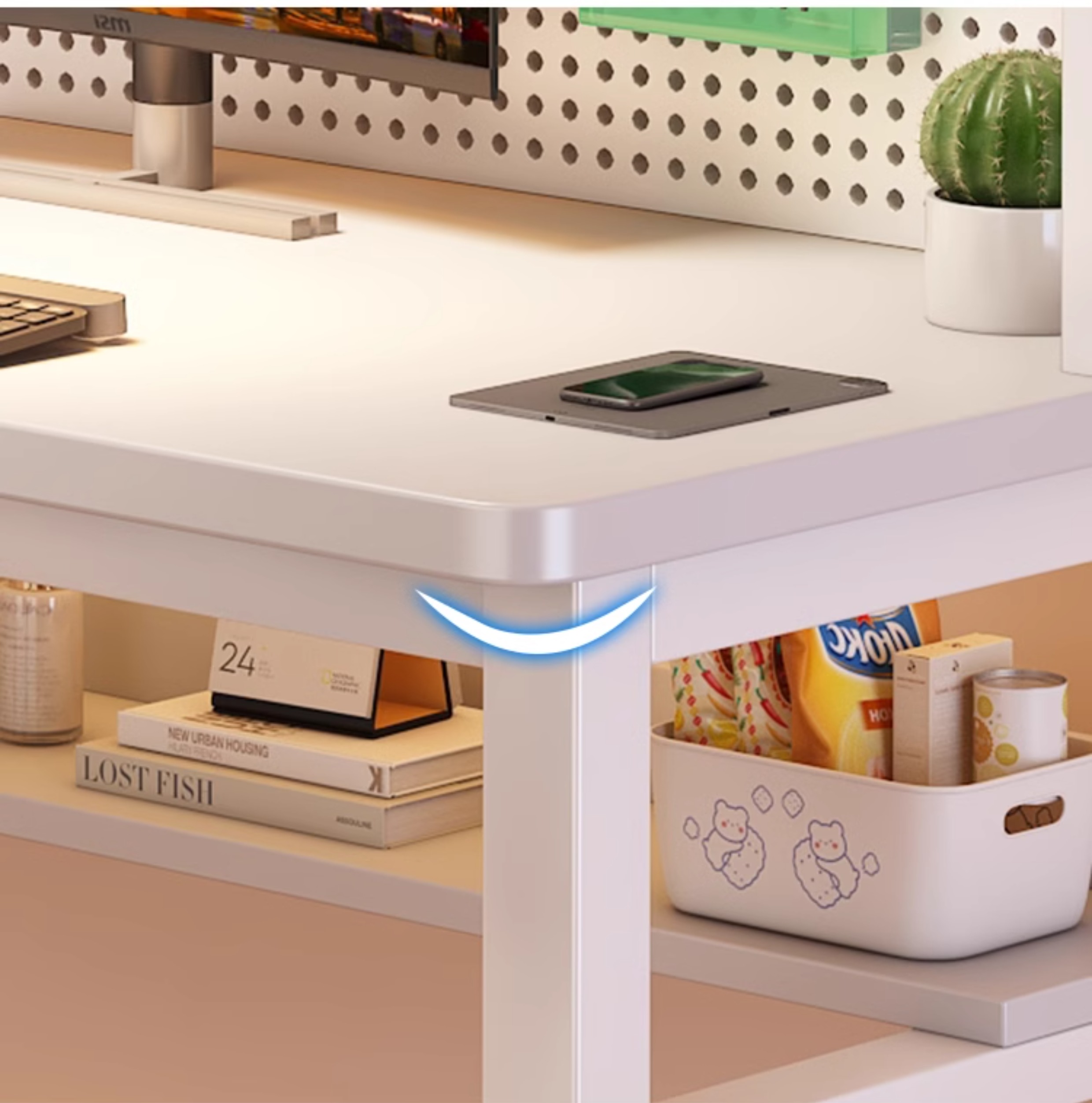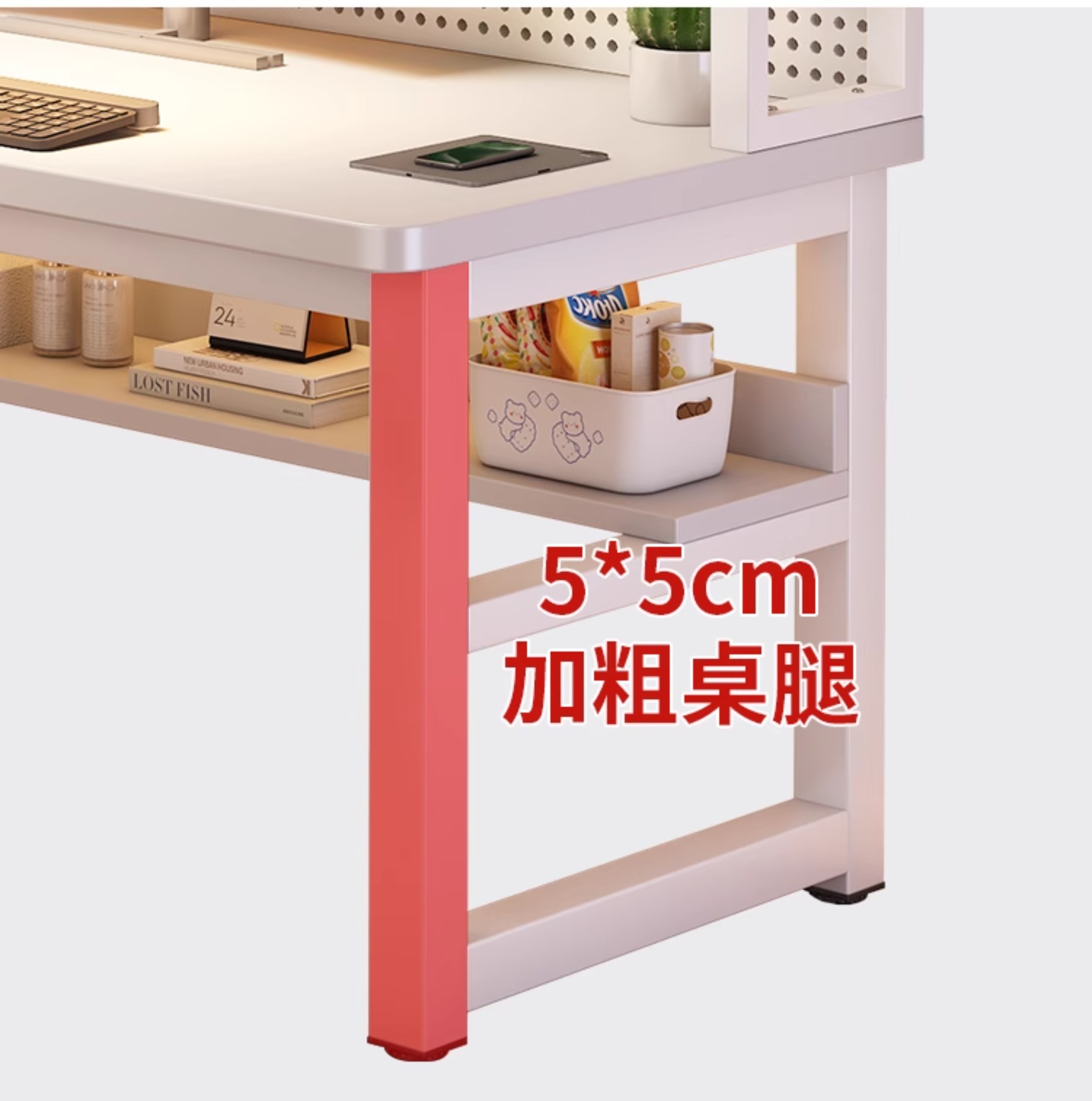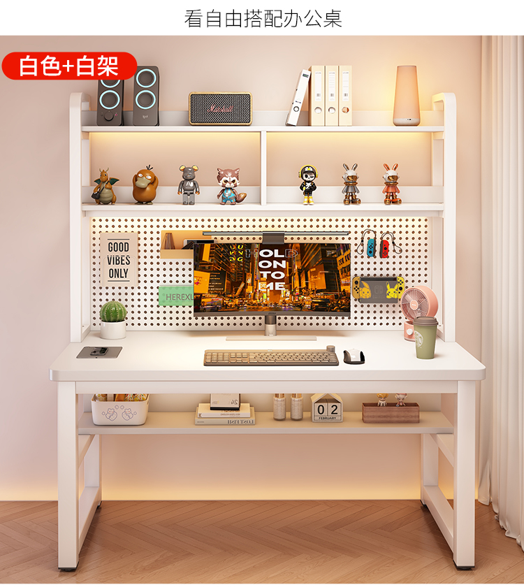 • [화이트 데스크탑 + 화이트 프레임] 두꺼운 타공판 컴퓨터 책상 100*60 [안정성을 높이기 위해 강화된 크로스바]