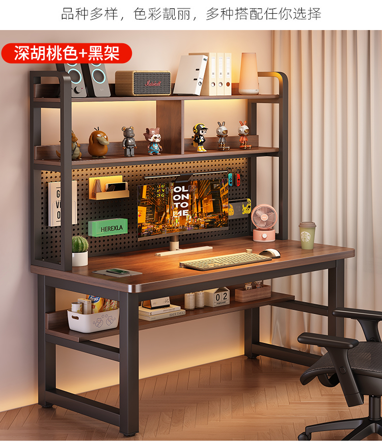 • [월넛 데스크탑 + 블랙 프레임] 두꺼운 타공판 컴퓨터 책상 120*60 [안정성을 높이기 위해 강화된 크로스바]