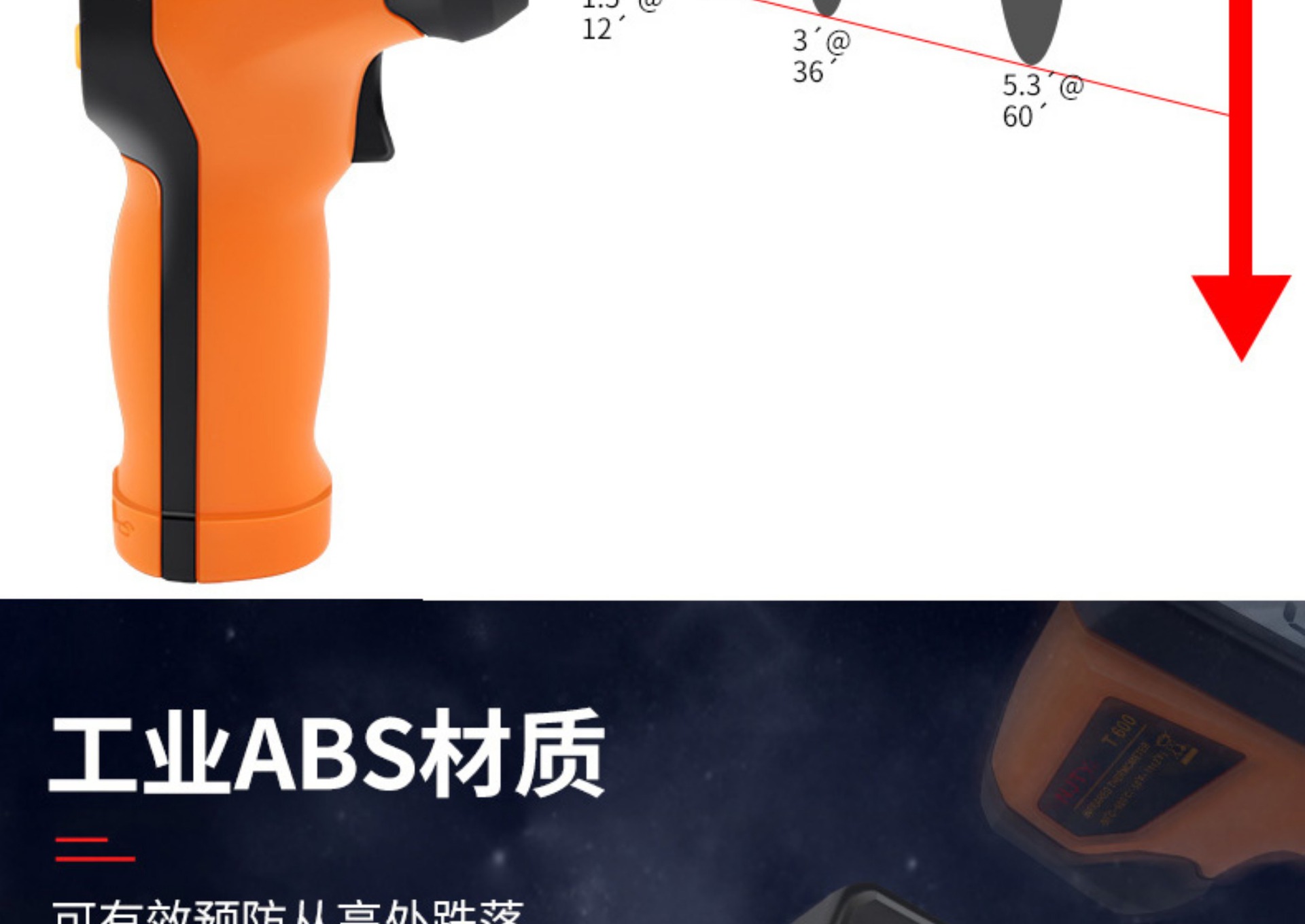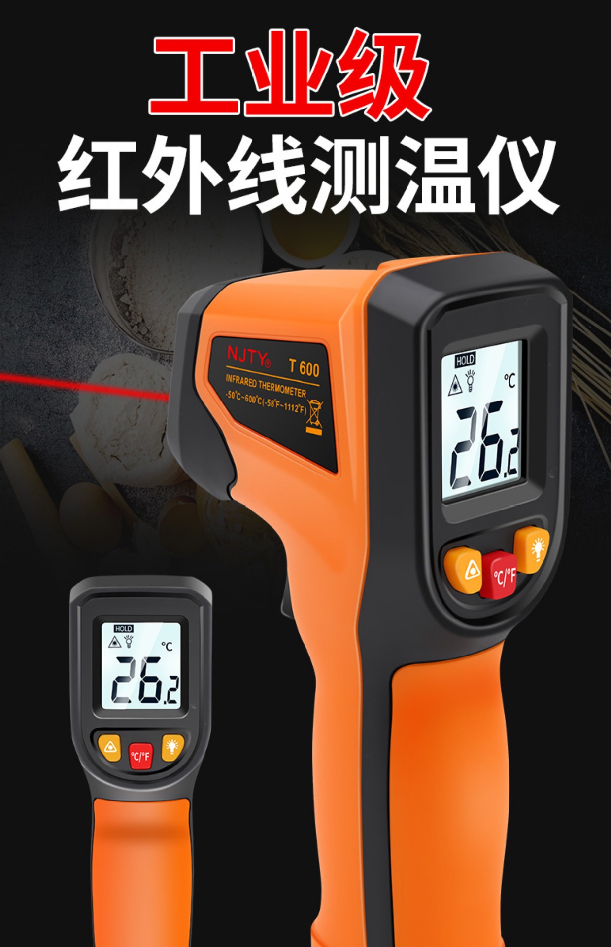 T600 고정밀 적외선 온도계 온도 총 물 온도계 베이킹 주방 산업용 오일 온도 총