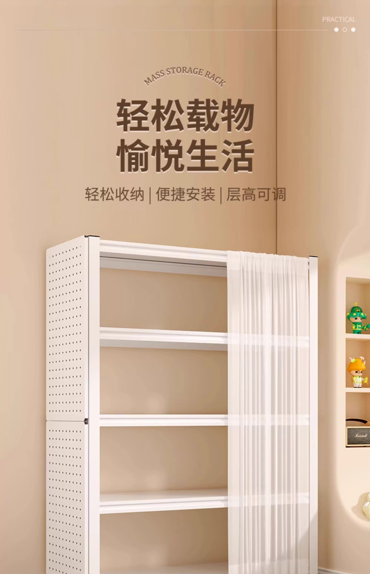 가정용 선반 수납 랙 다층 바닥에서 천장까지 이어지는 발코니 수납 랙 구멍 보드 책장 통합 벽 수납 철제 랙스토어 가기