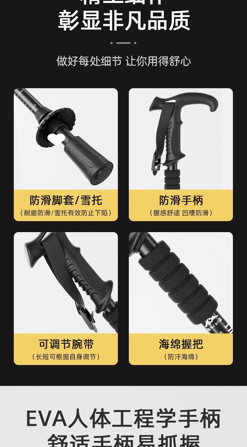 등산 및 하이킹 알루미늄 합금 등산 장비 등산 스틱 다기능 텔레스코픽 지팡이 남성과 여성을위한 초경량 야외 모델