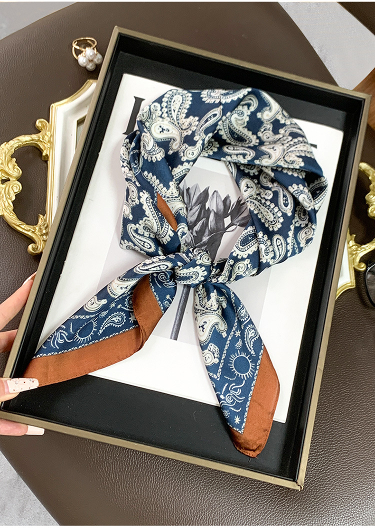 네이비 캐슈 실크 스카프, 고급 여름 넥 스카프, 자외선 차단 장식 스카프, 스카프, 머리띠, 벨트