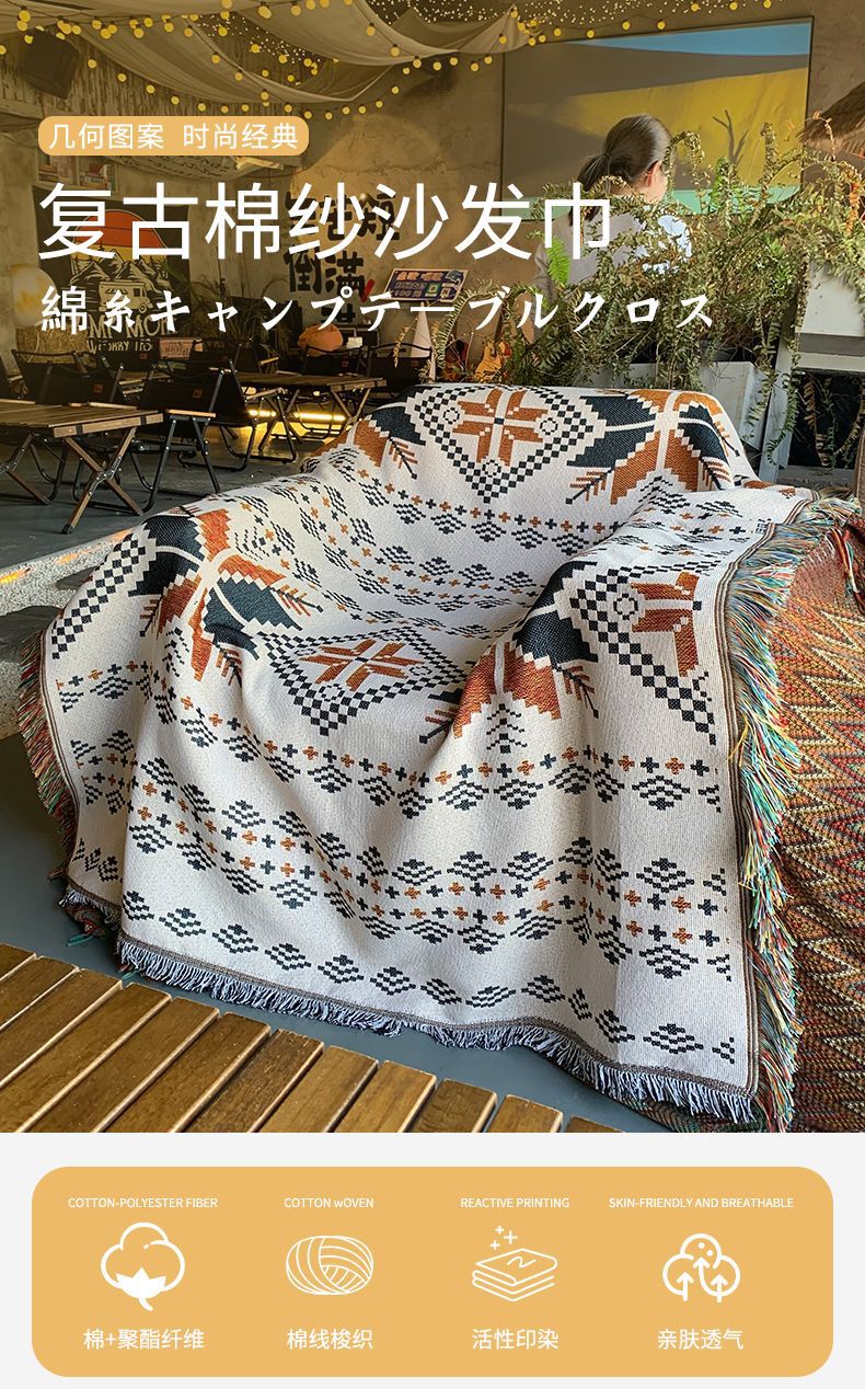 레트로 아메리칸 코튼 싱글 소파 타월 원피스 풀 커버 천 커버 담요 커버 보헤미안 장식