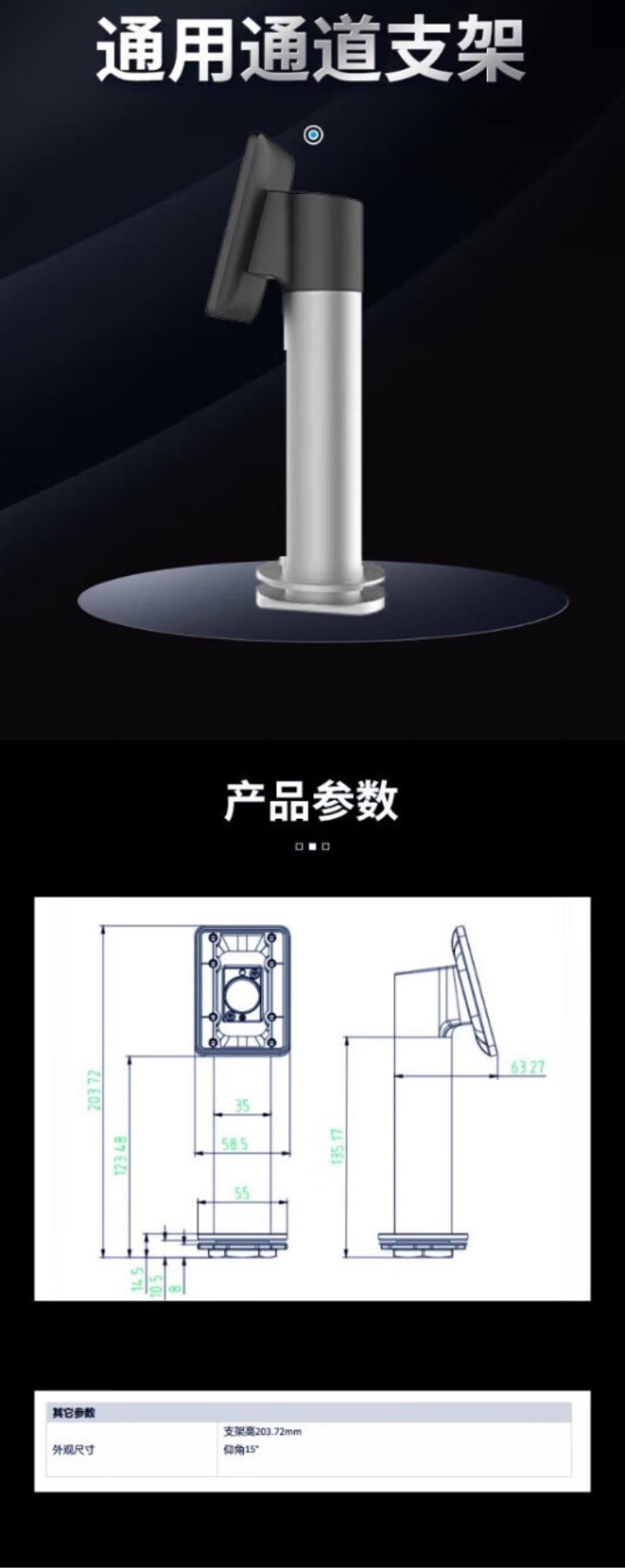 • 该款支架安装时支持0度和15度仰角安装,安装后不可调节