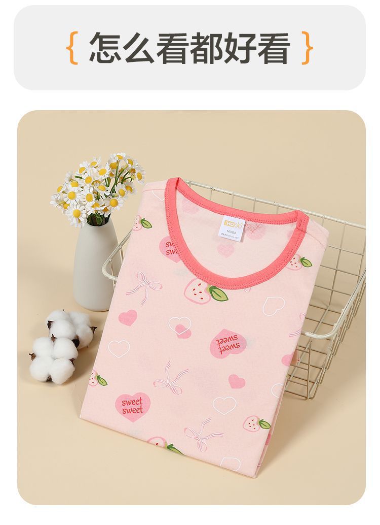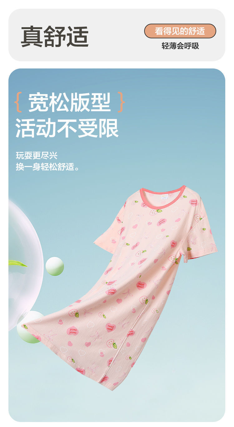Hongdou 홈 여름 소녀 잠옷 순면 AAA 등급 항균 중대형 어린이 반팔 스커트스토어 가기
