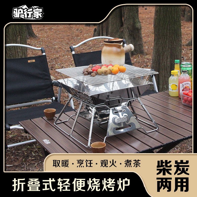 Donkey Expert 야외 캠핑 접이식 바베큐 스테인레스 스틸 목재 및 숯 이중 용도 높이 조절 가능한 그릴 화덕스토어 가기