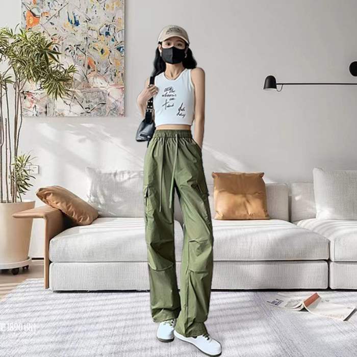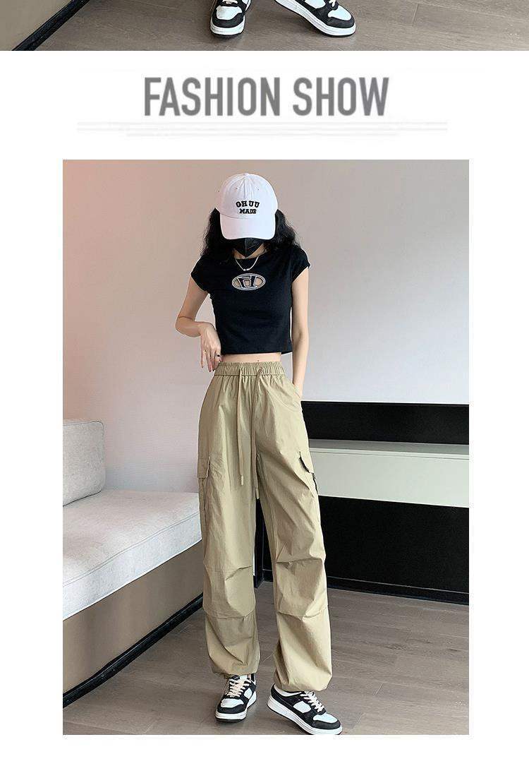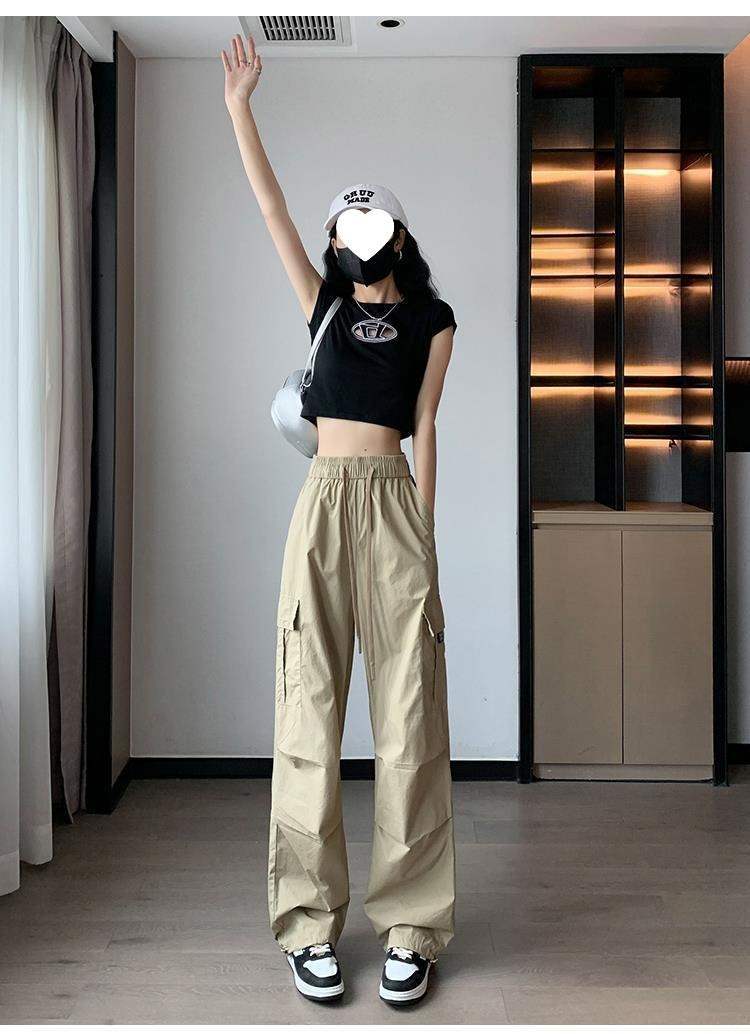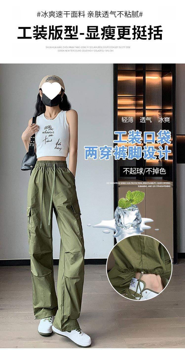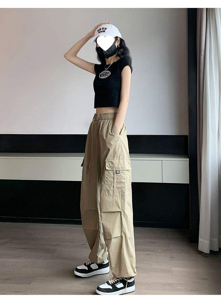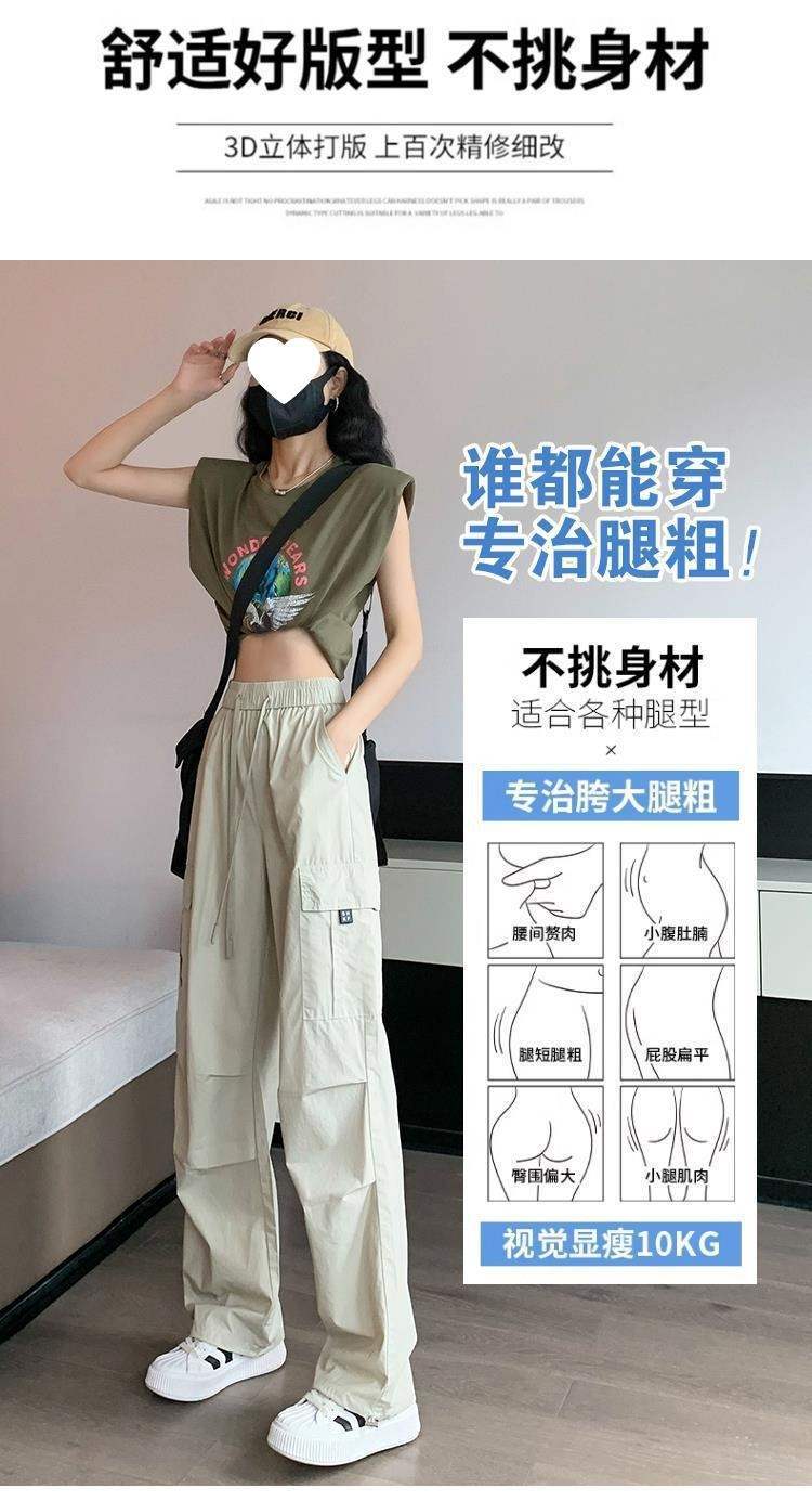 여성용 속건성 카고 팬츠, 얇은 하이웨이스트 드로스트링 레깅스 하이킹 팬츠, 아메리칸 하렘 스웨트팬츠