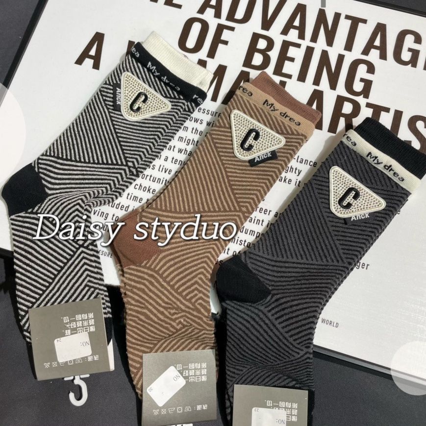 미드 튜브 양말 C 문자 스트라이프 새로운 인터넷 연예인 가을 겨울 한국 스타일 복고풍 양말 Douyin 생방송 Xiaohongshu 같은 양말스토어 가기