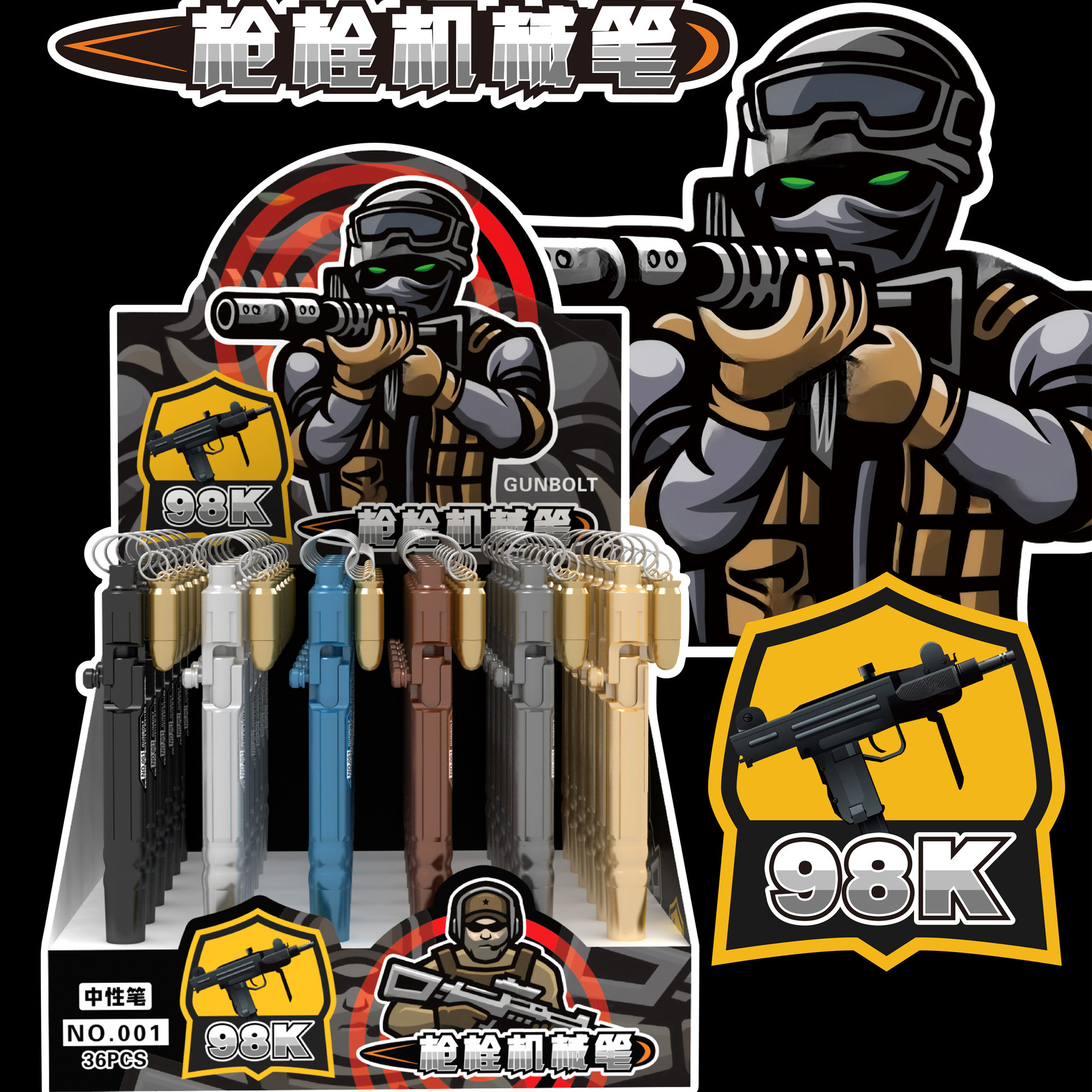 새로운 핫 002 총 블록 기계식 펜 크리 에이 티브 쿨 98K 기관단총 소년 펜던트 젤 펜 서명 펜