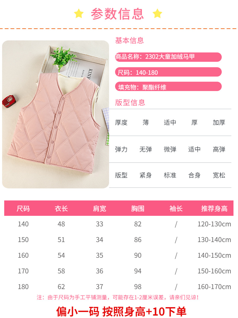브로큰 코드 클리어런스 아동용 벨벳 면 조끼 2024 가을 겨울 중대형 아동용 남학생 및 여학생 교복용 민소매 조끼