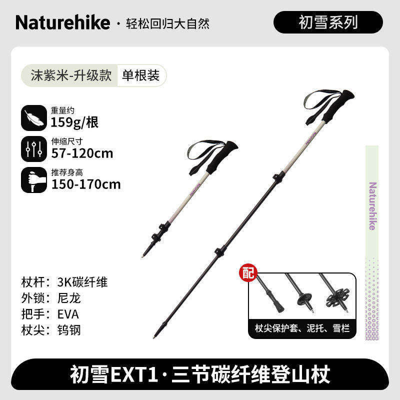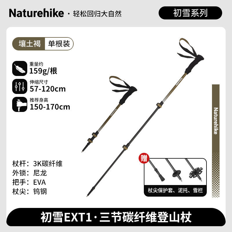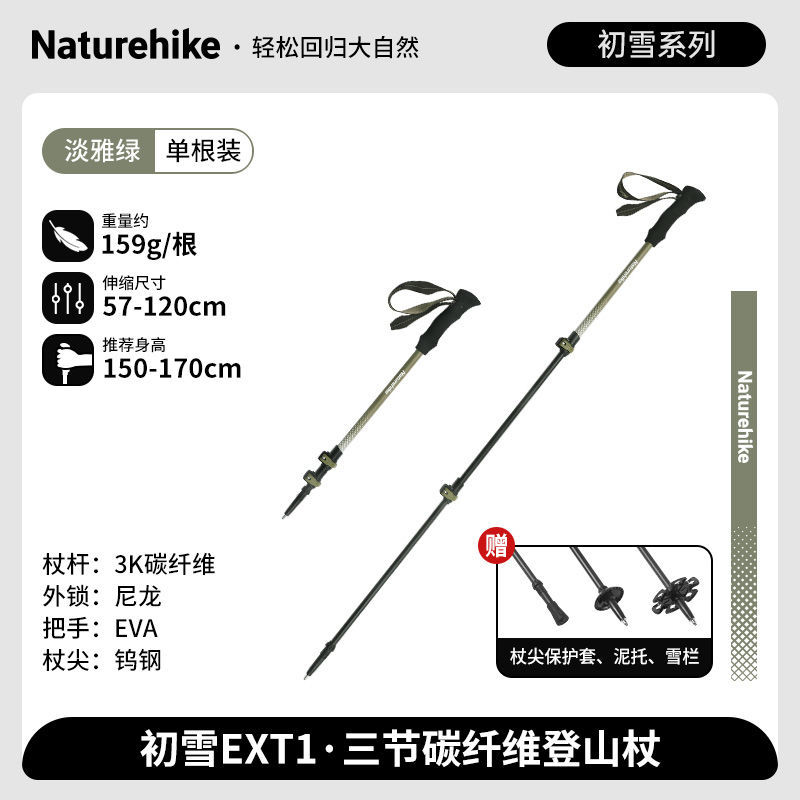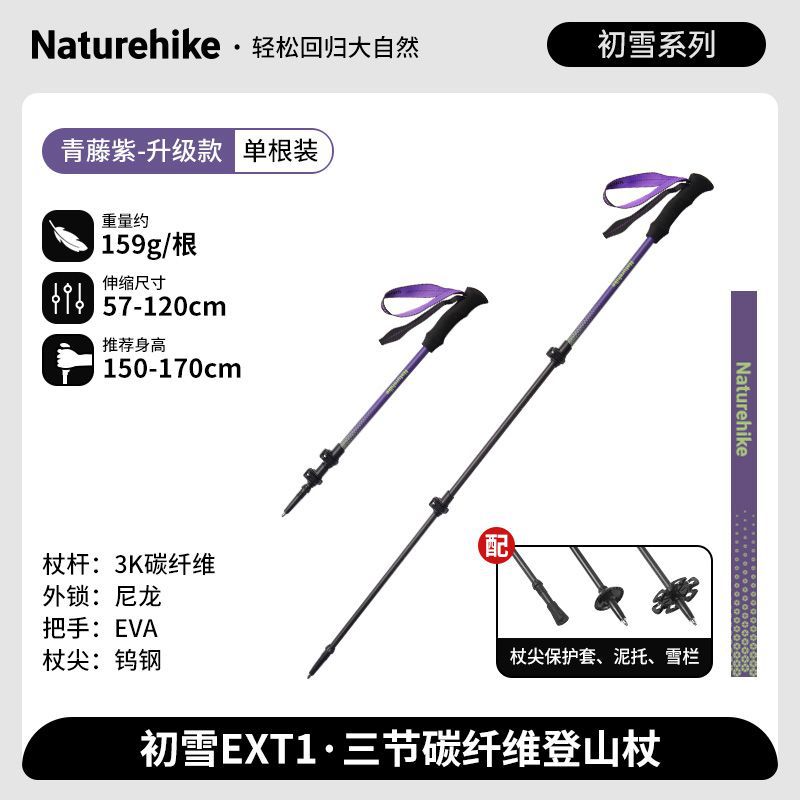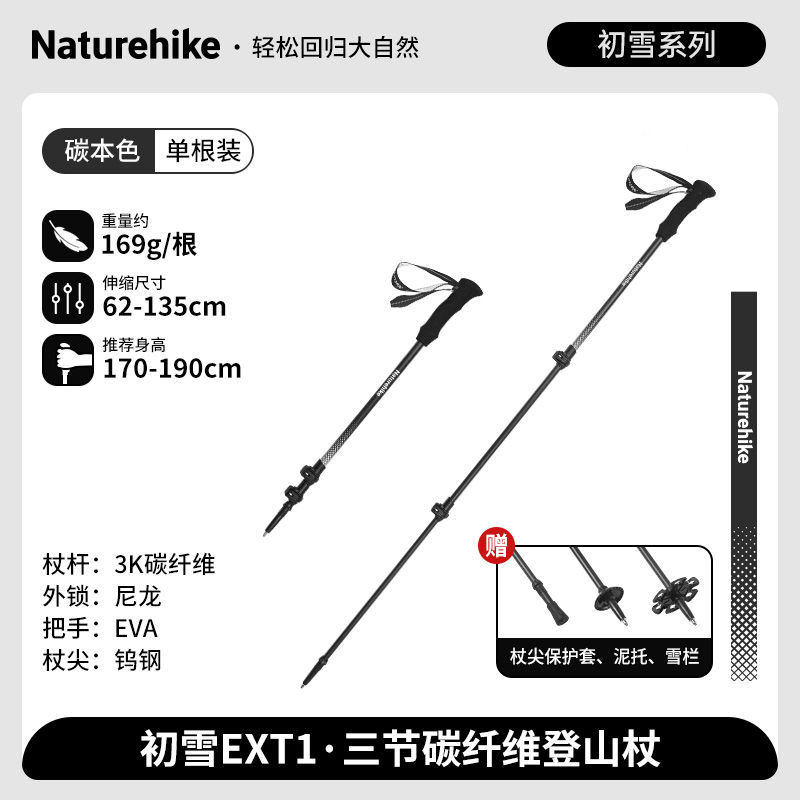 네이처하이크 트레킹 폴 3섹션 탄소 섬유 외부 잠금 장치 텔레스코픽 야외 캠핑 하이킹 초경량 지팡이