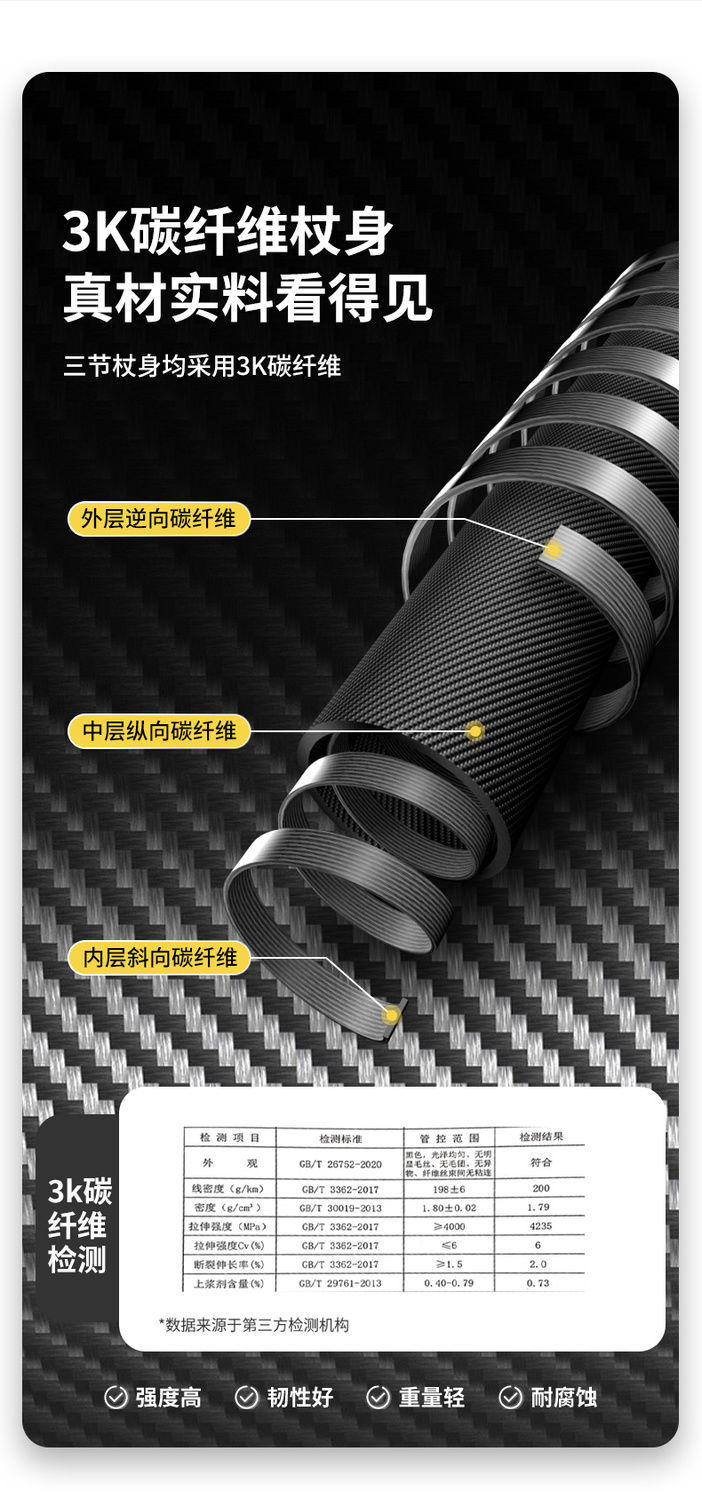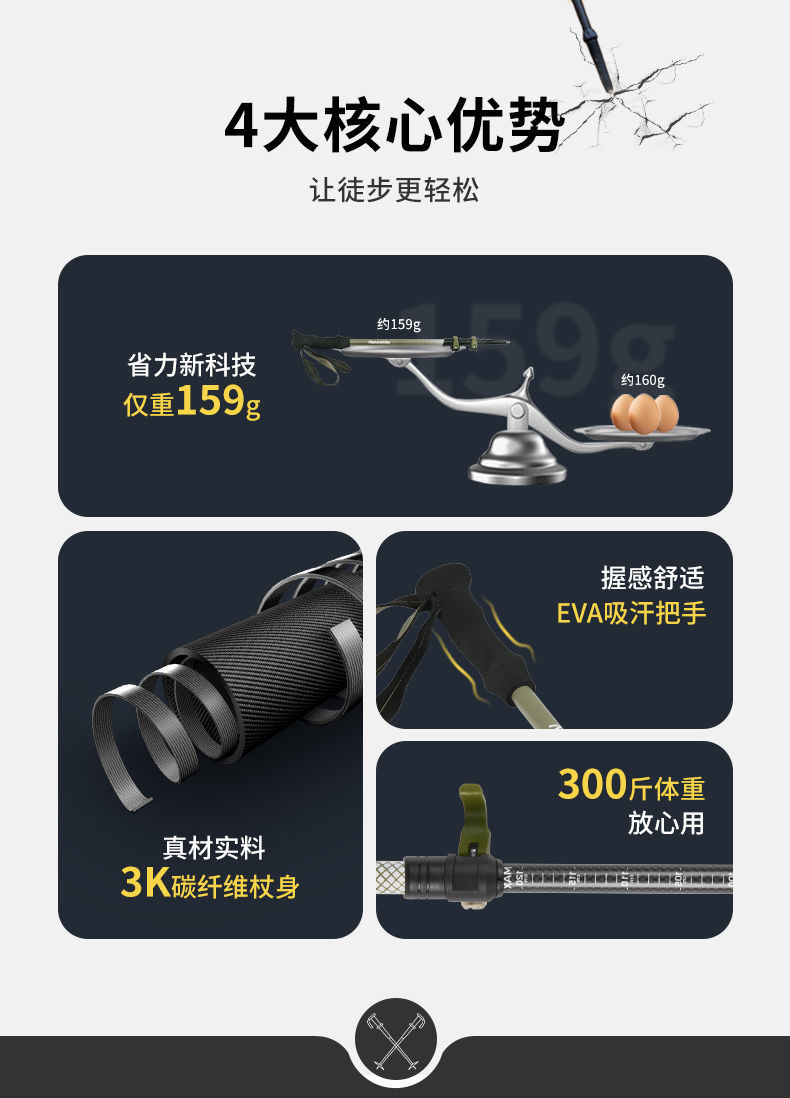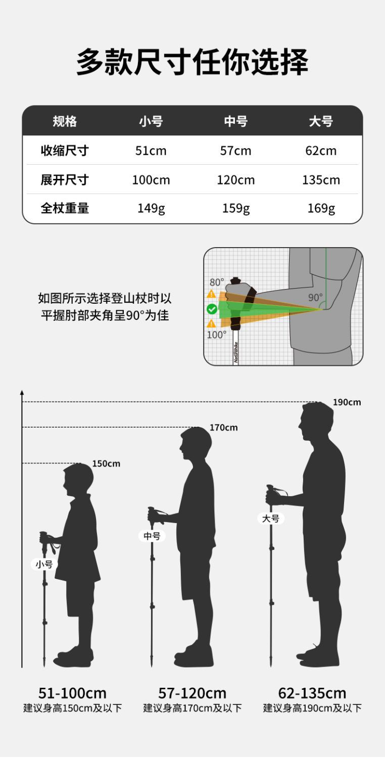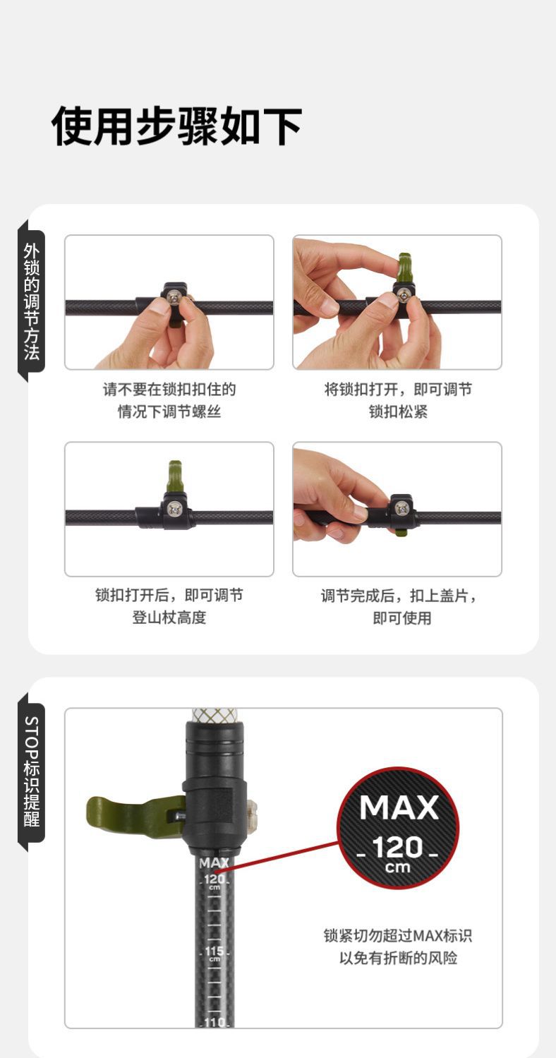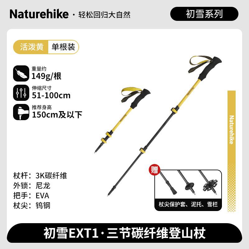 네이처하이크 트레킹 폴 3섹션 탄소 섬유 외부 잠금 장치 텔레스코픽 야외 캠핑 하이킹 초경량 지팡이스토어 가기