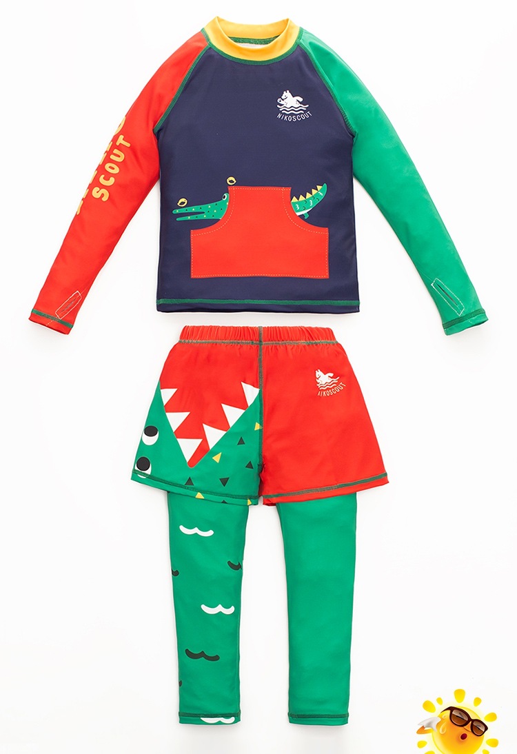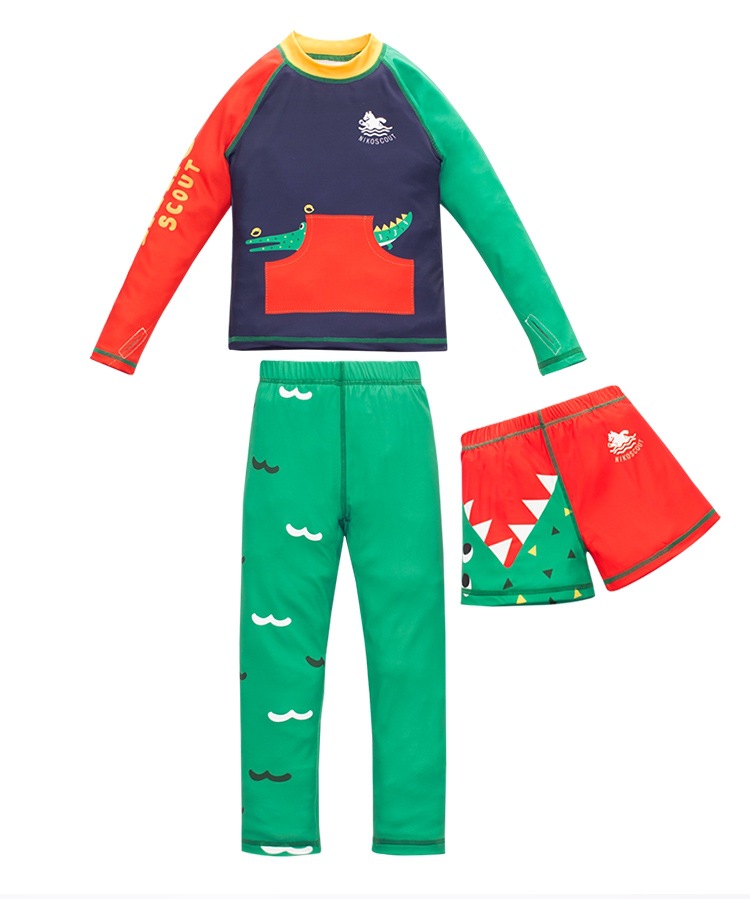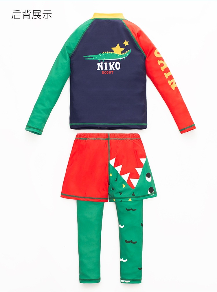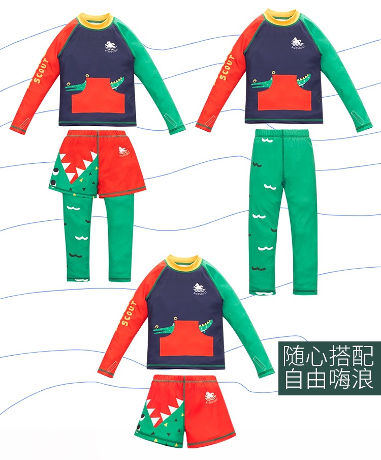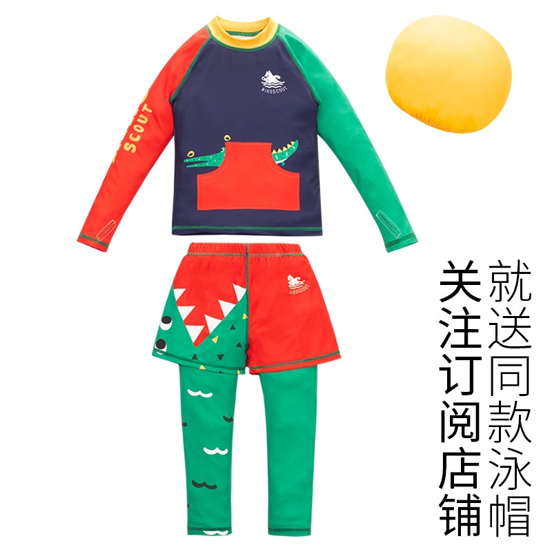 유아용 수영복, 아동용 수영복, A형 속건성 해변 중대형 아동용 긴팔 바지 스플릿 자외선 차단 남아용 수영복