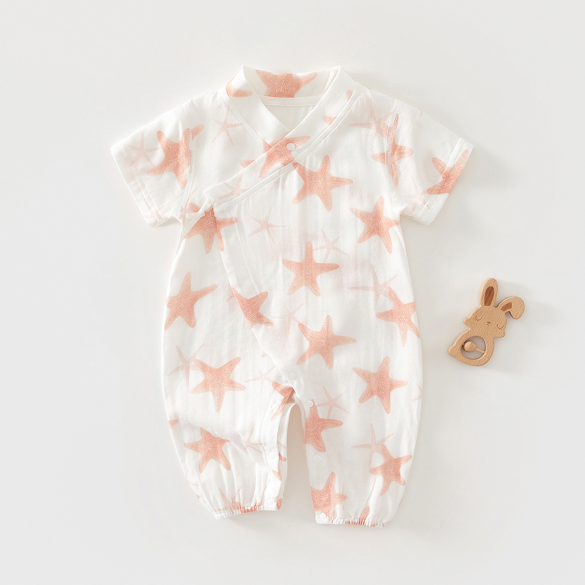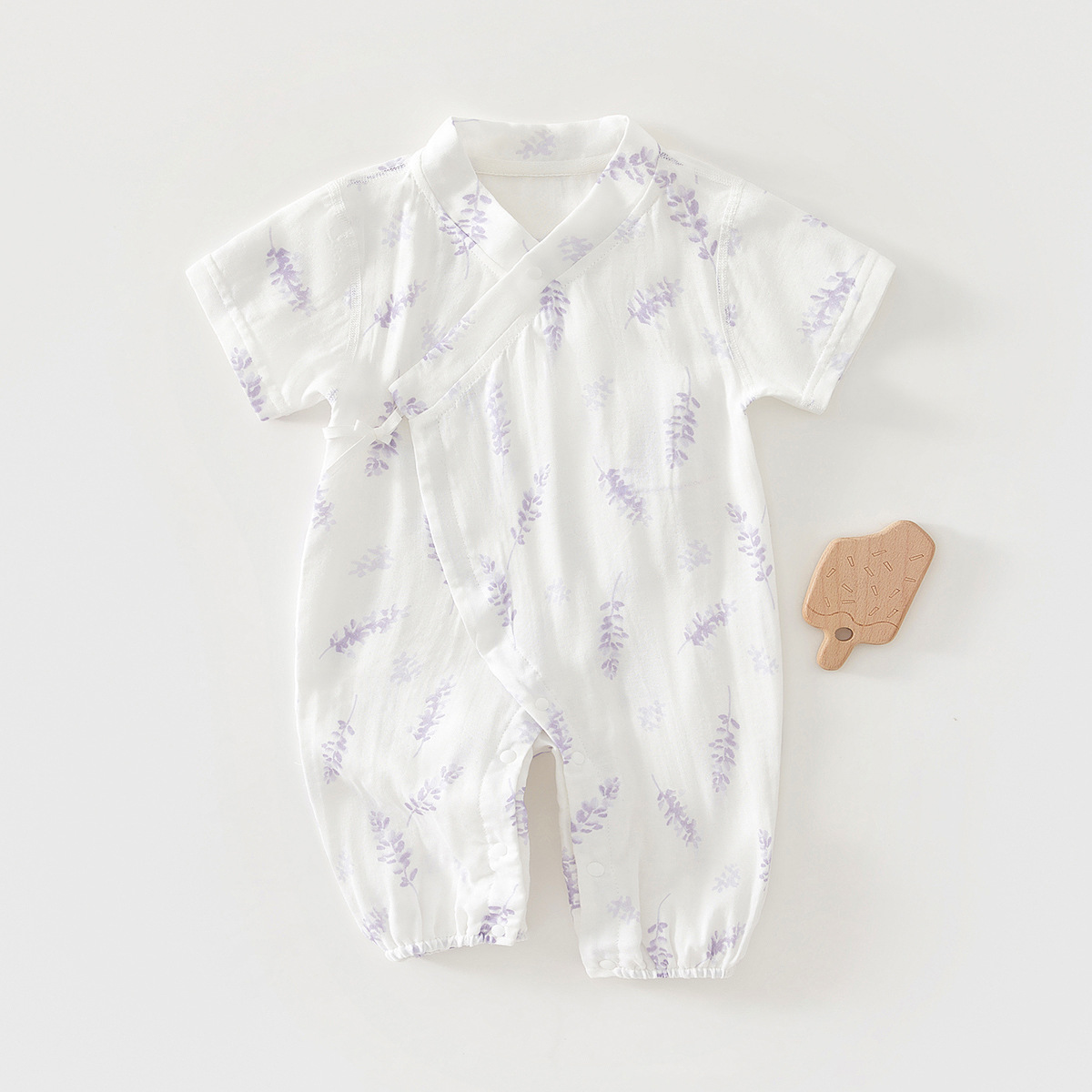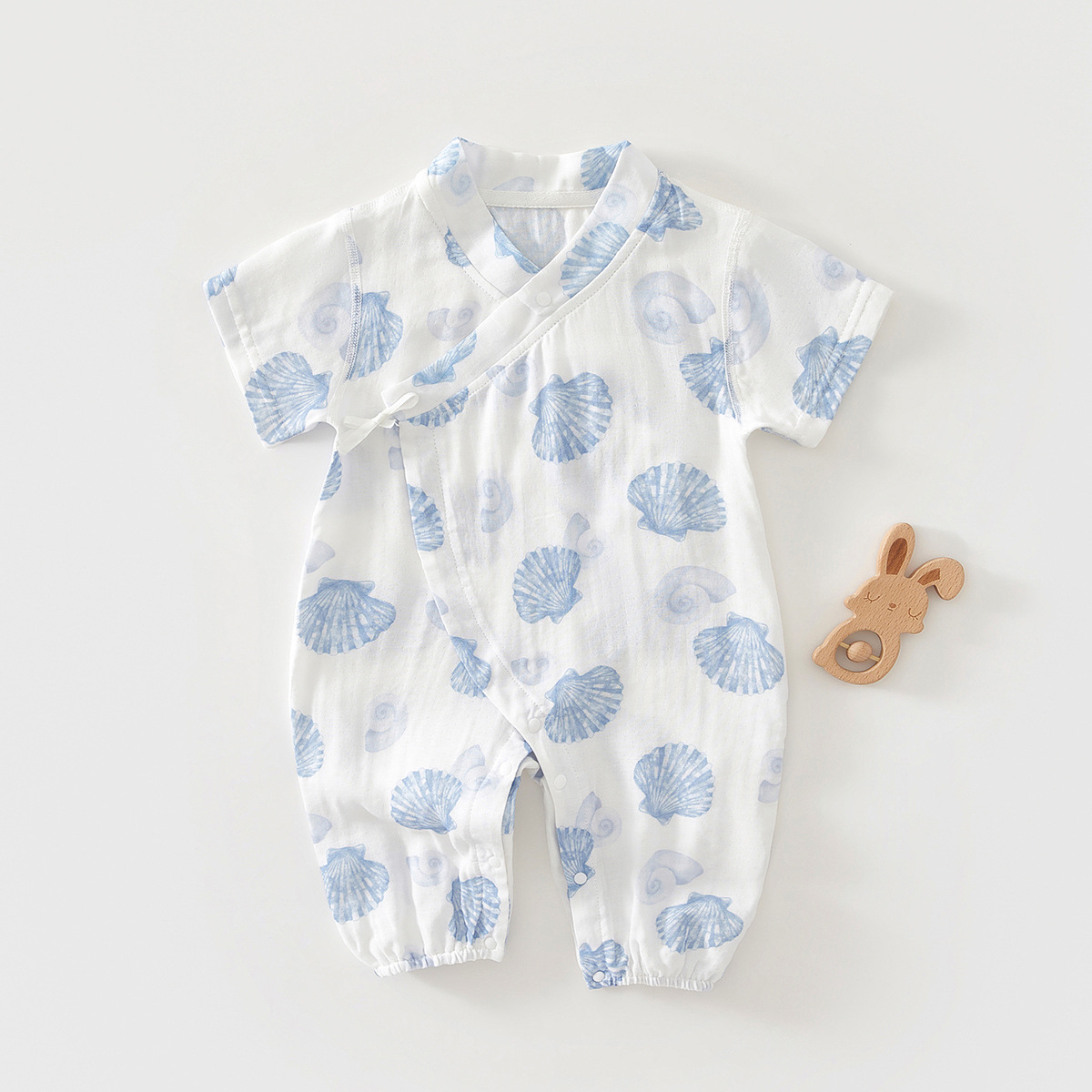아기 옷 여름 얇은 통기성 아기 점프 슈트 반팔 바지 대나무 면화 신생아 유아 잠옷 크롤링 슈트