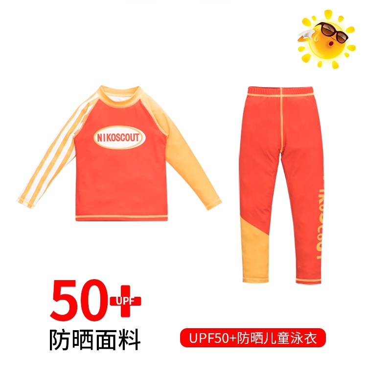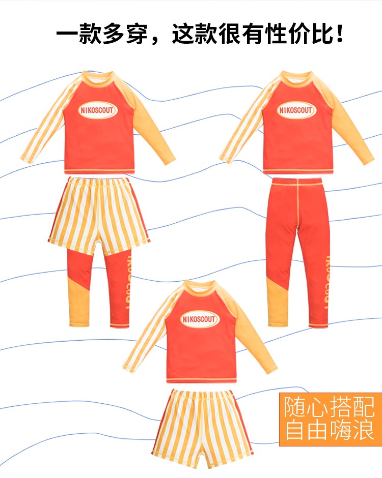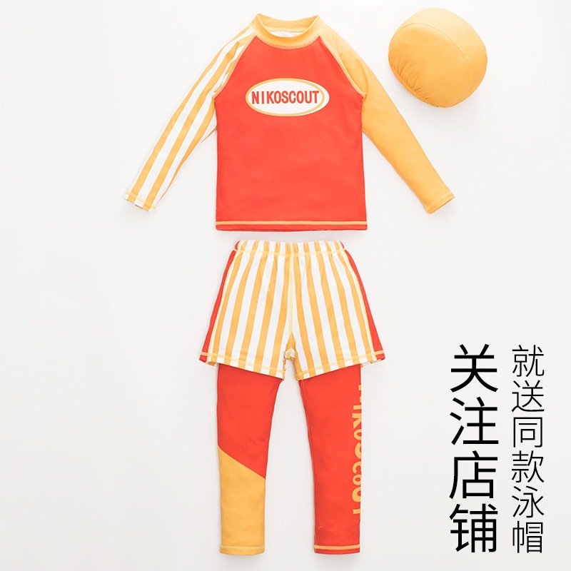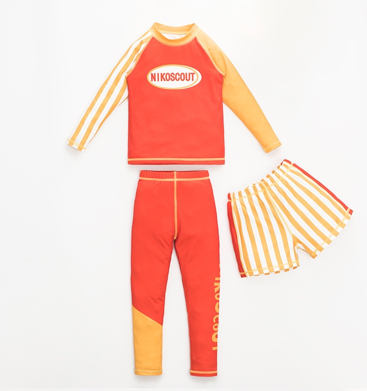 아동용 수영복, 남아용 스플릿 자외선 차단 전문 베이비 A형 속건성 중대형 아동 및 청소년 3피스 긴팔 수영복