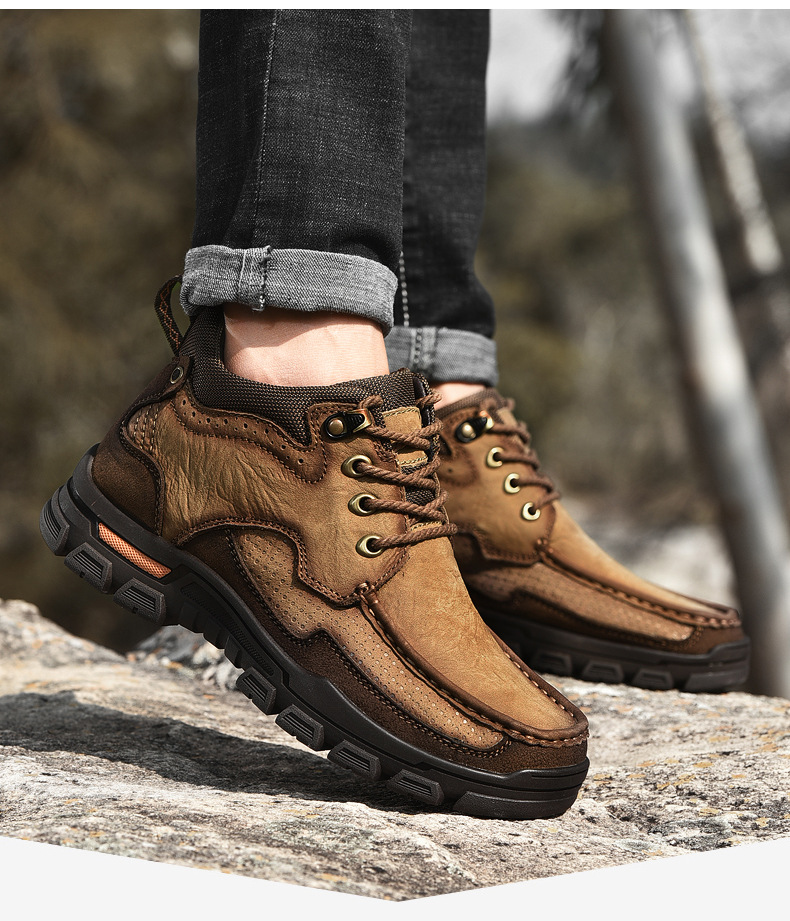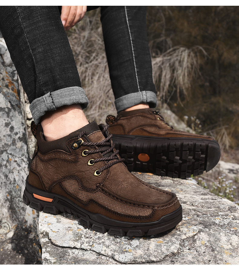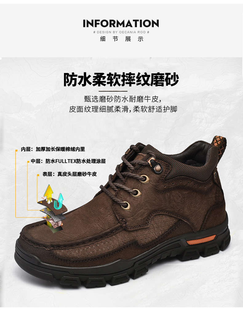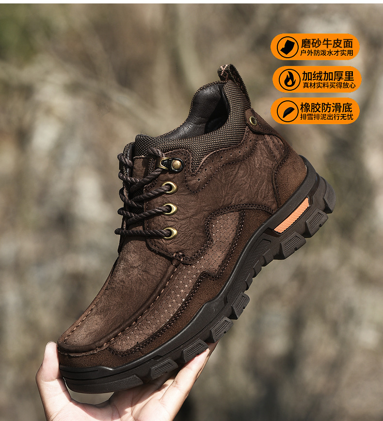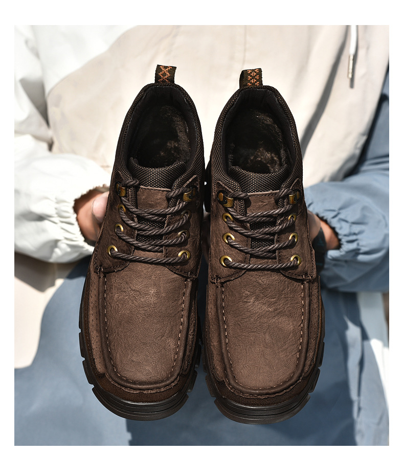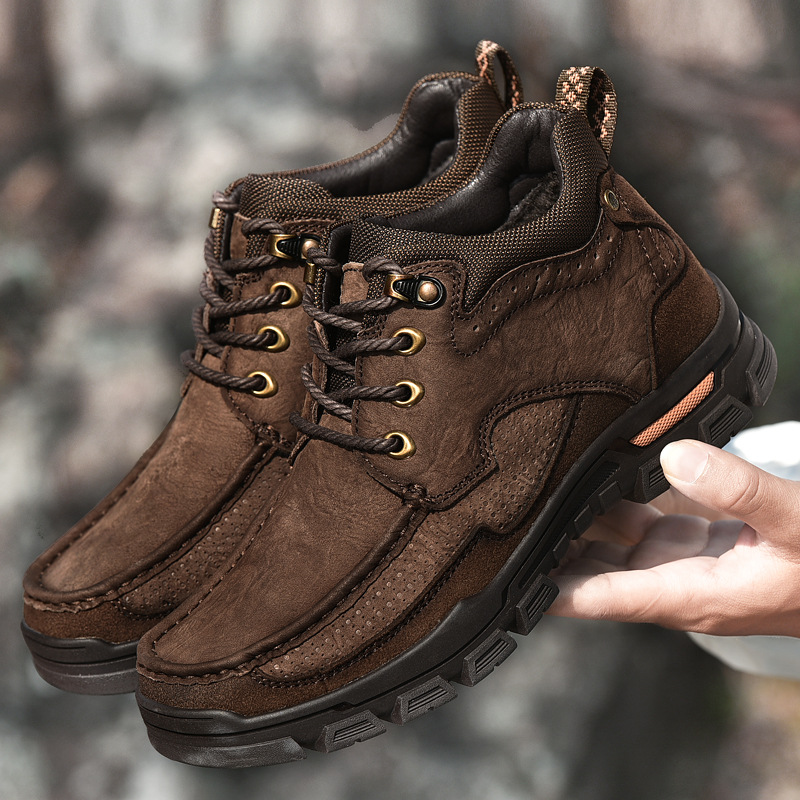 폴 카멜 코튼 슈즈 남성용 정품 가죽 겨울 따뜻한 스노우 부츠 두꺼운 밑창 야외 등산 작업화 하이탑 가죽 신발스토어 가기