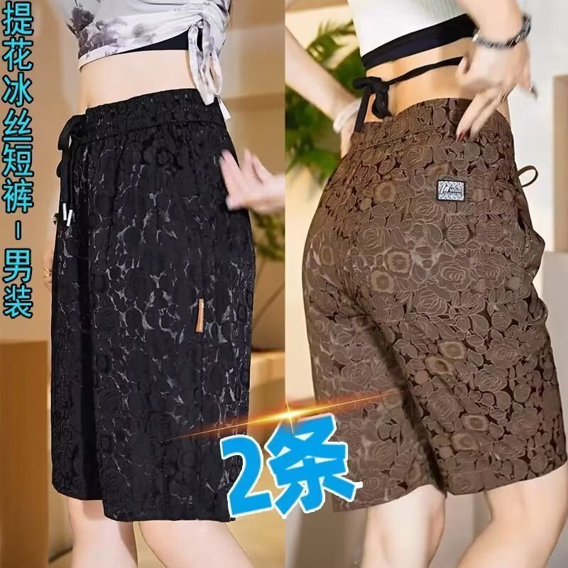 반바지 남성용 아이스 실크 여름 루즈 아우터 캐주얼 팬츠 경량 자카드 5부 팬츠 다재다능하고 트렌디함스토어 가기