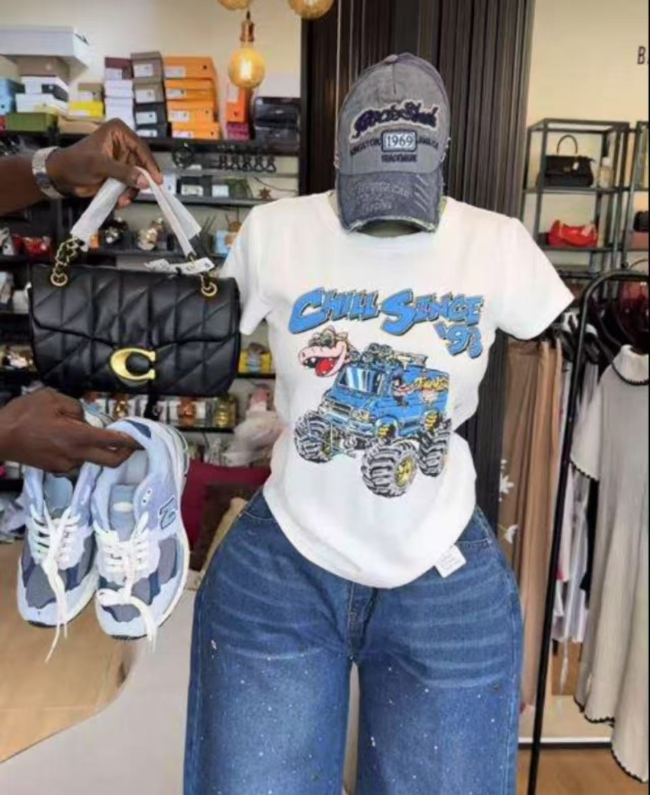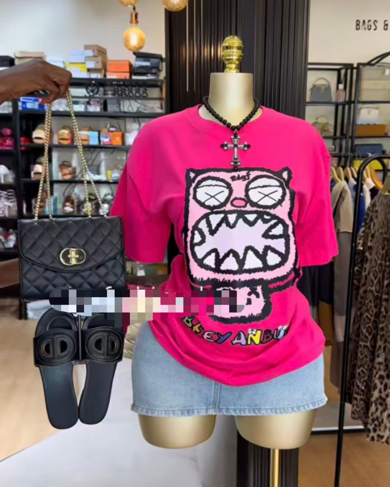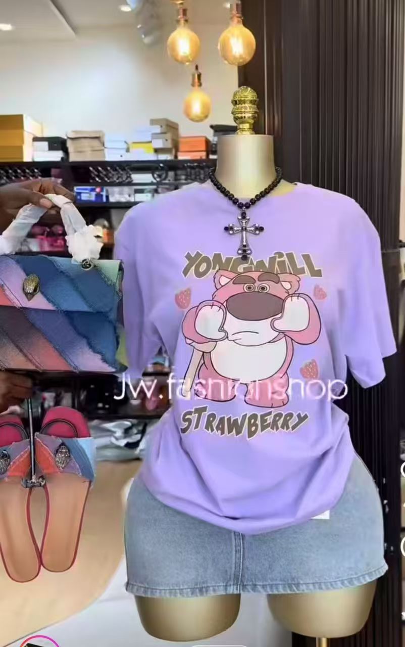 300g 만화 프린트 2025 신상 여름 반팔 티셔츠 여성용 루즈핏 트렌디 만능 상의스토어 가기