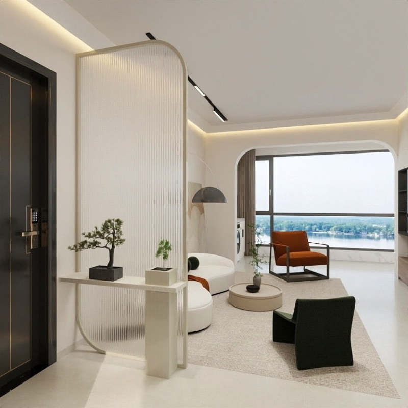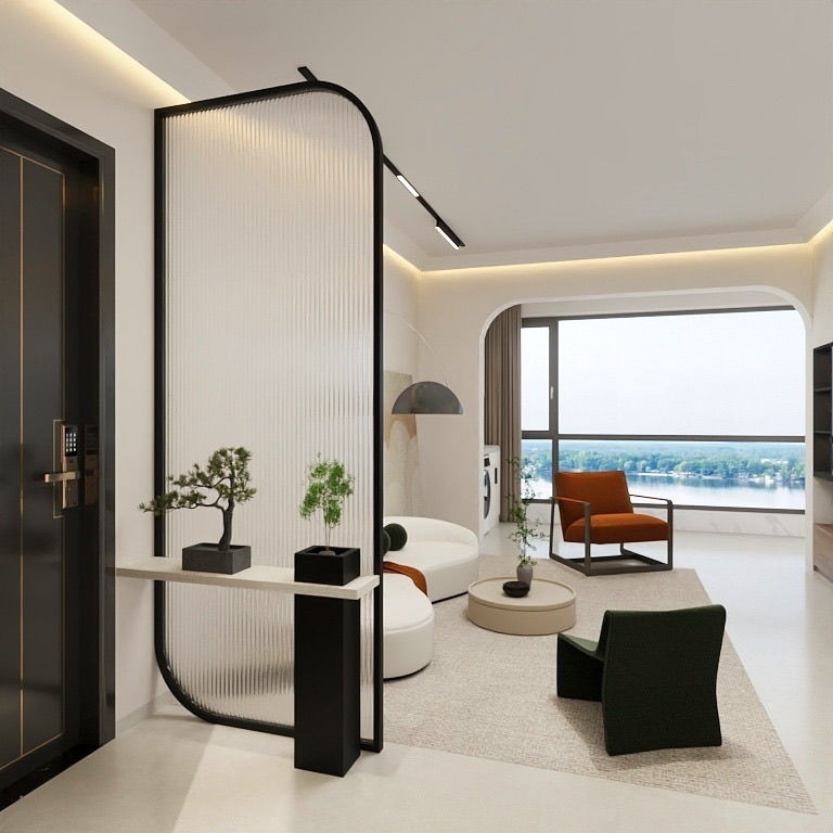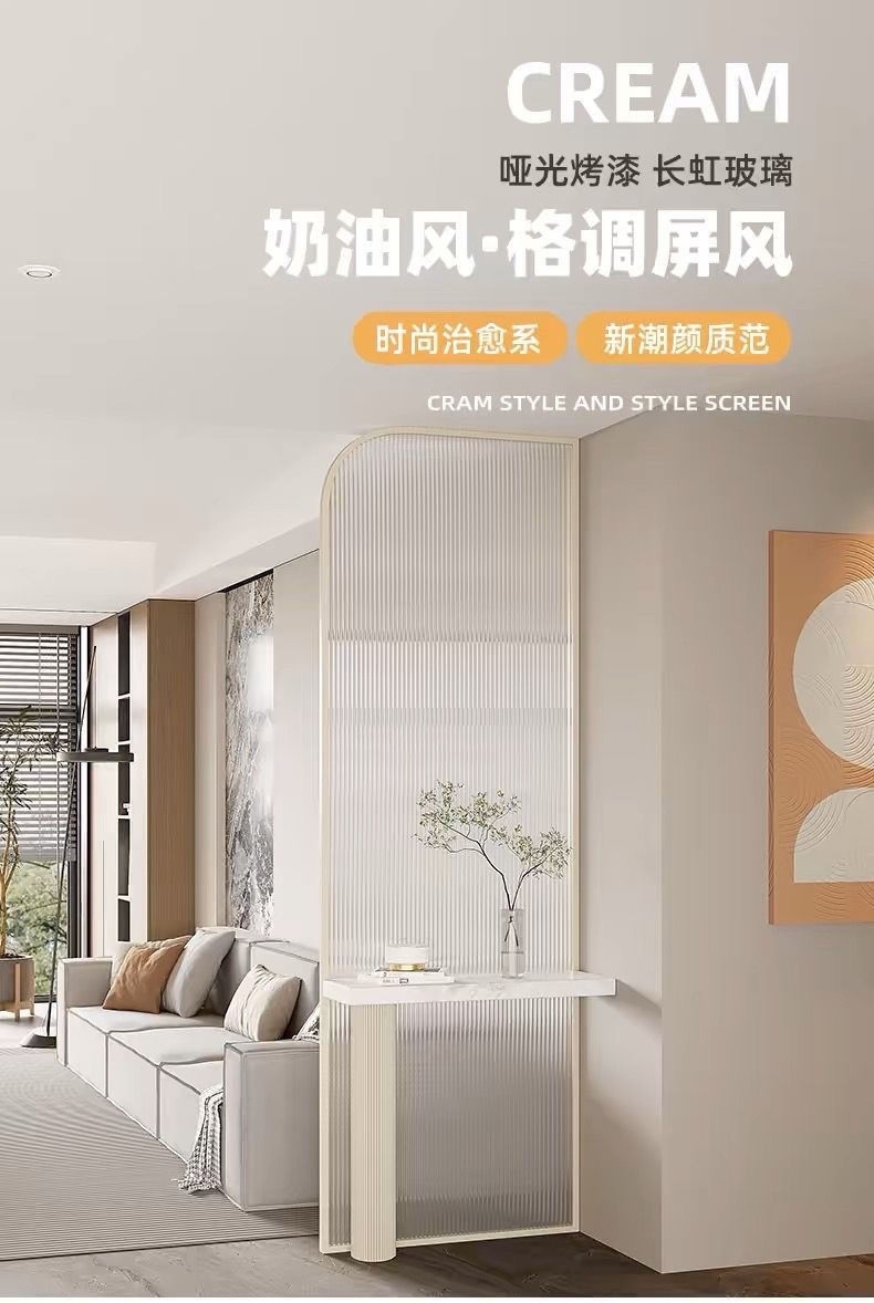 奶油风金属长虹玻璃隔断卧室客厅玄关沙发卫生间屏风隔断客厅遮挡