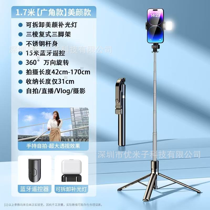 Y-13 휴대폰 카메라 스틱 삼각대 블루투스 셀카가 포함된 3-in-1 셀카 스틱 일체형 휴대가 간편한 라이브 방송 스탠드