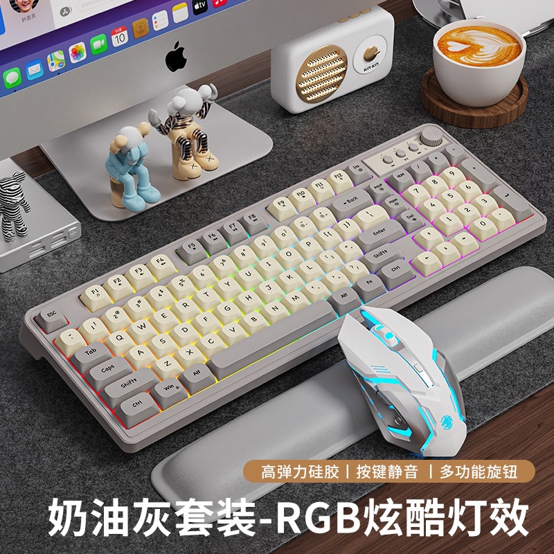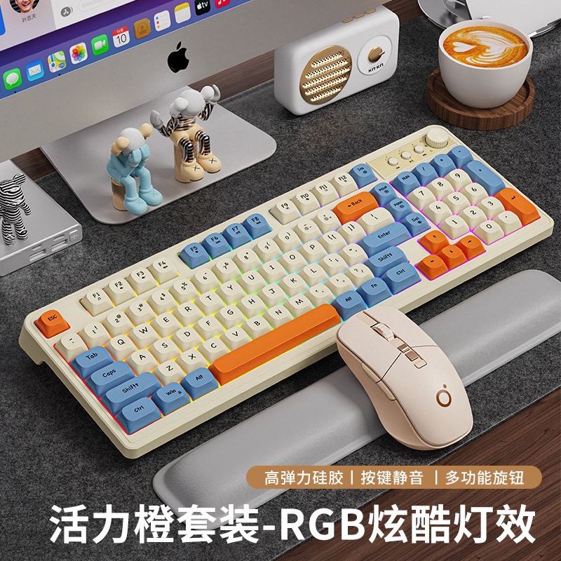 Glare 98 유선 무음 키보드 RB 소녀 무선 오피스 컴퓨터 노트북 기계식 키보드 및 마우스 세트