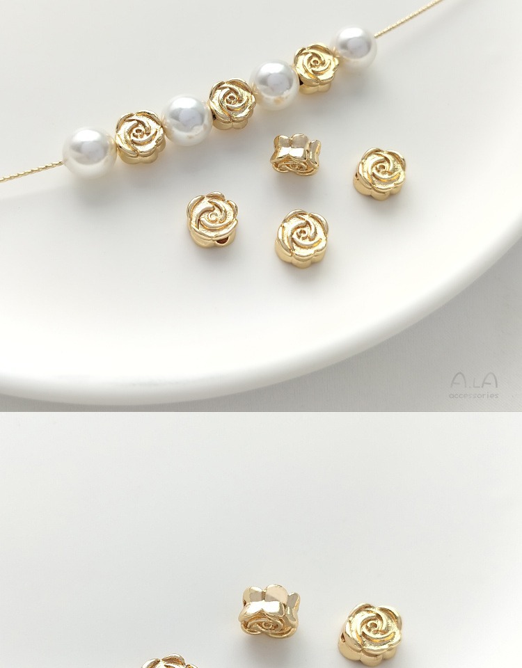14K 패키지 리얼 골드 장미 복숭아 꽃 구슬 DIY 액세서리 수제 진주 크리스탈 팔찌 귀걸이 쥬얼리 재료