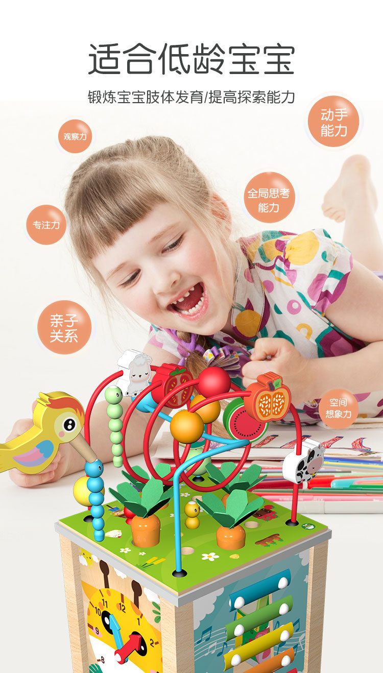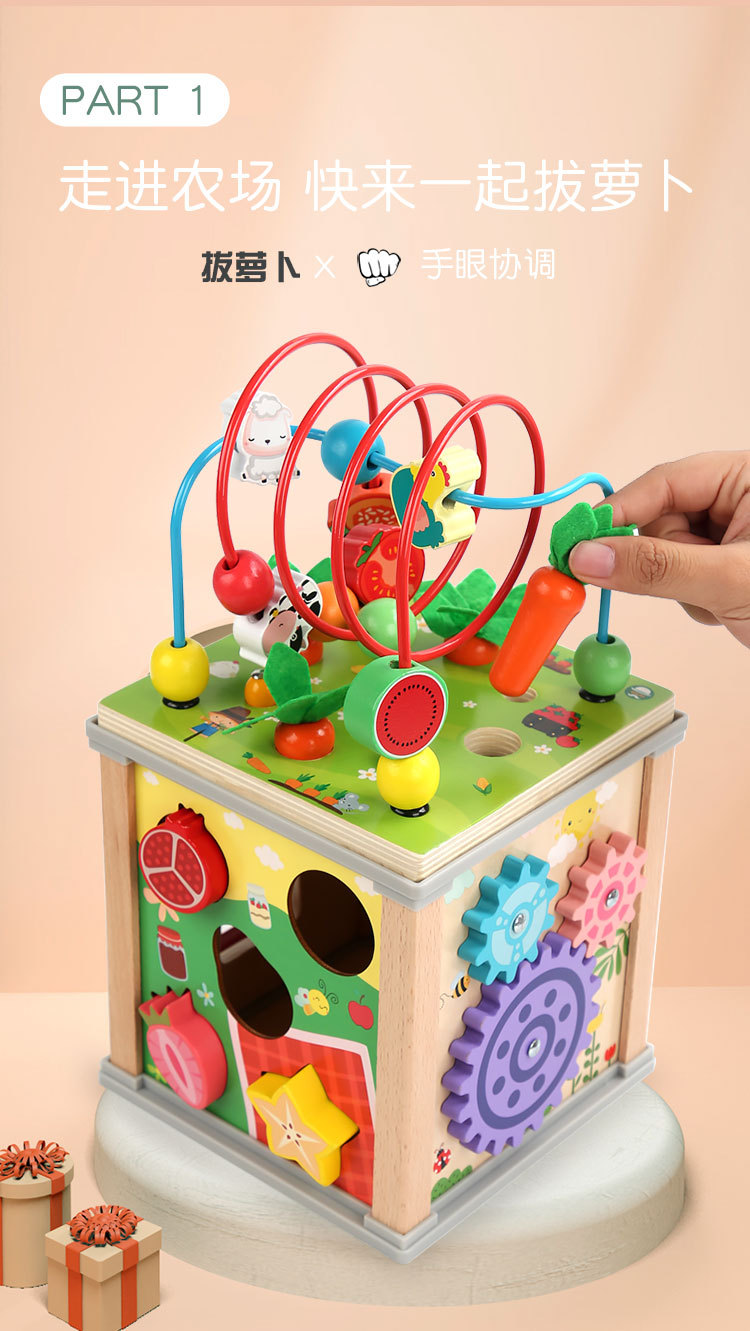 10-in-1 구슬로 감싼 다기능 보물 상자 어린이 구슬 조기 교육 계몽 빌딩 블록-나무 장난감스토어 가기