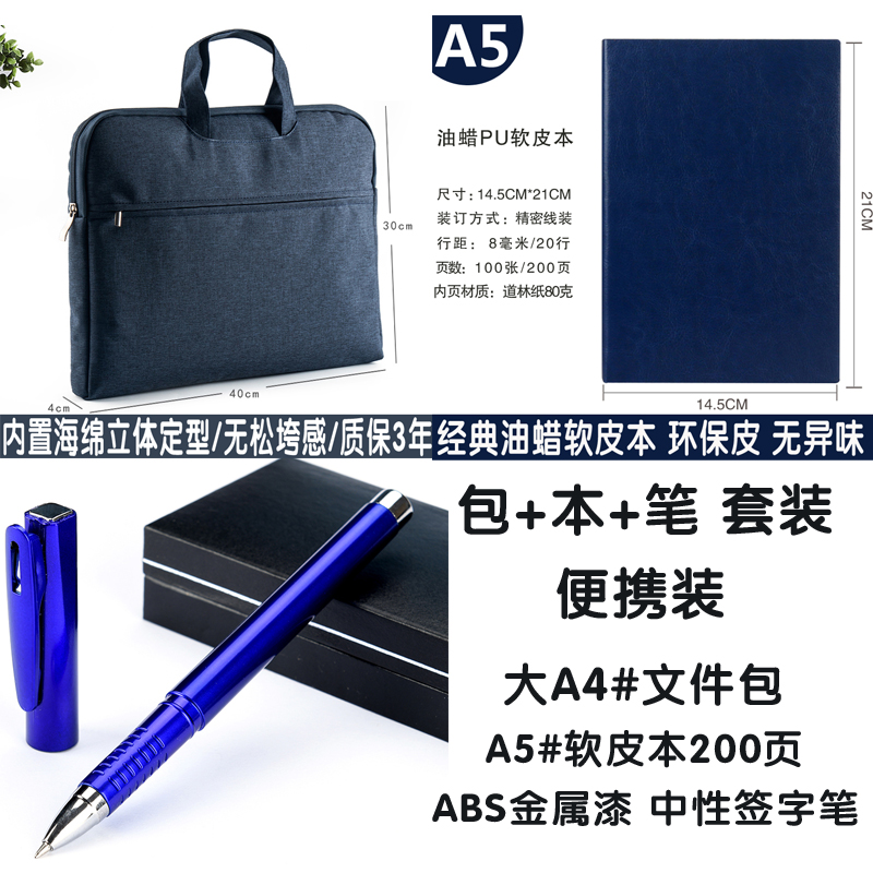 • 블루 1901 # S 두꺼운 가방 + 노트 + 펜 세트