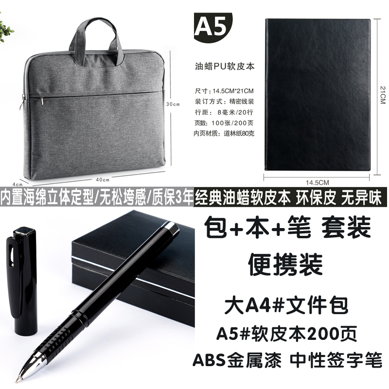 • 그레이 1901#S 두꺼운 가방 + 노트 + 펜 세트