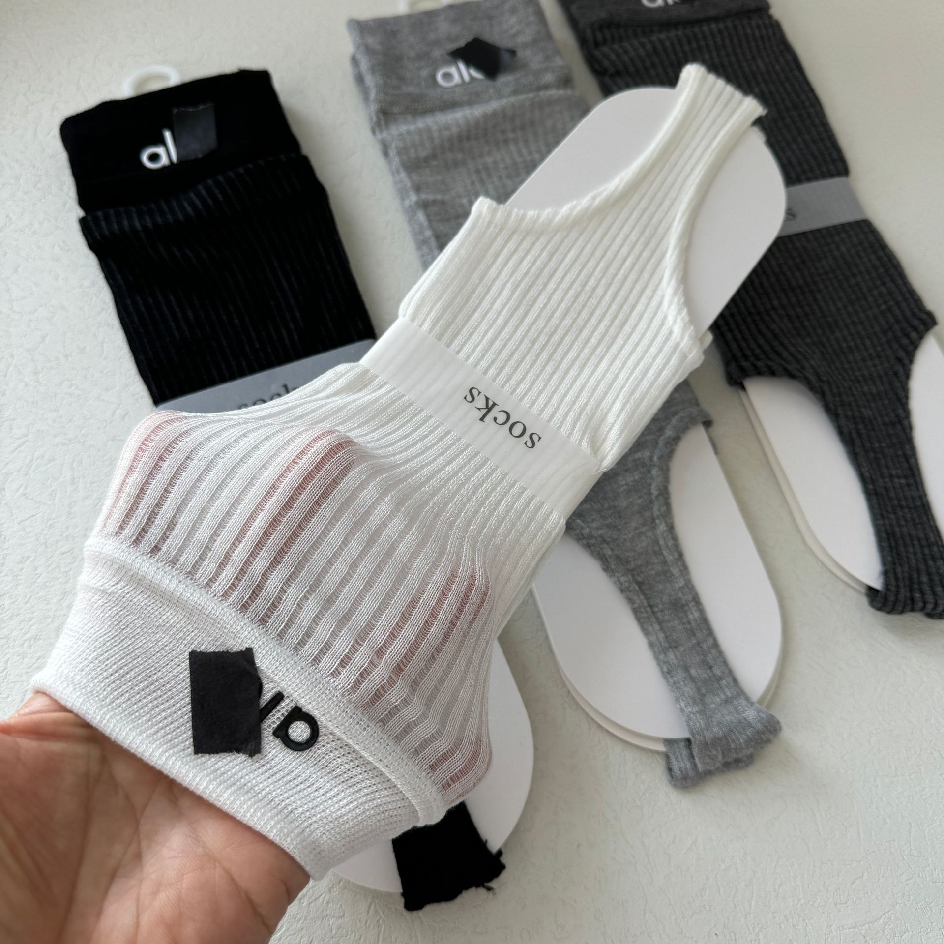SD247-18 유럽 스타일 레터 스탭 양말, 심플 트렌디 여성 양말, 봄 여름 얇은 레그 커버