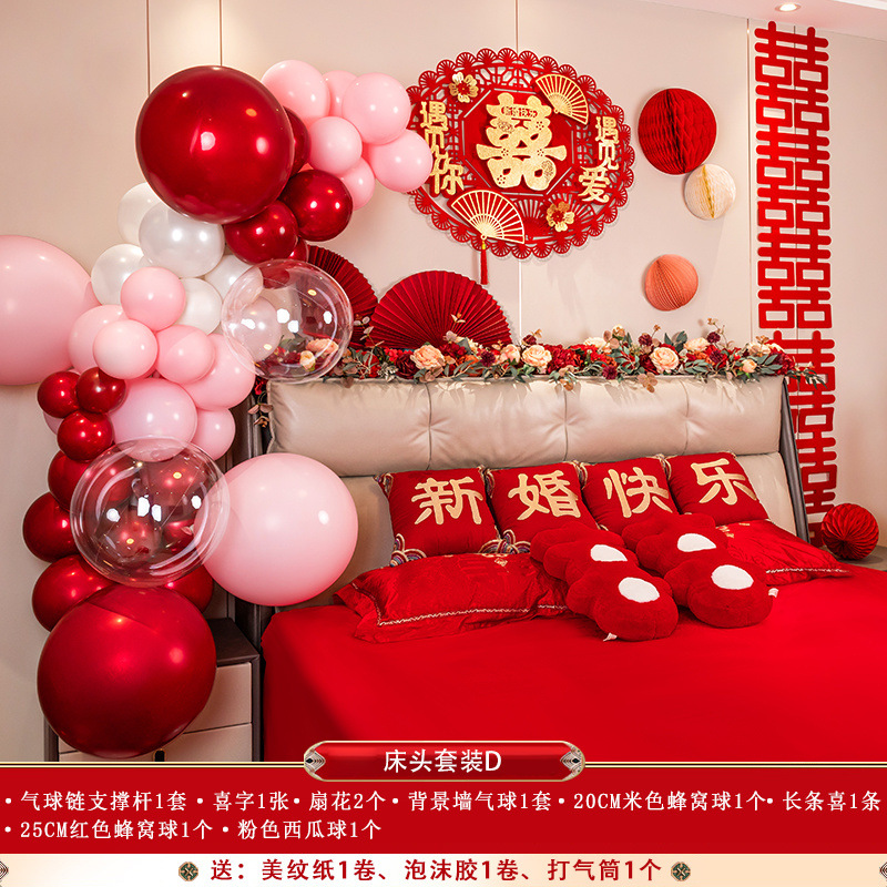 웨딩룸 레이아웃 세트 남성과 여성의 새 집 마스터 침실 머리맡 배경 벽 장식 풍선 웨딩 용품스토어 가기