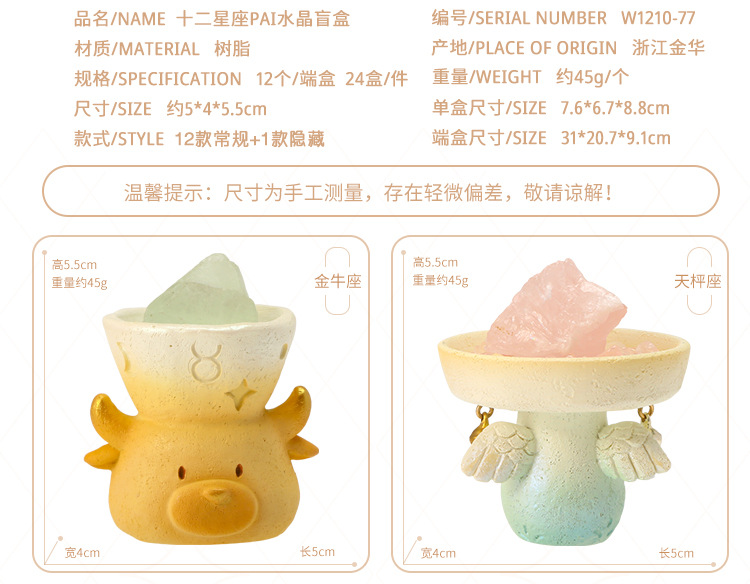 창의적인 12개 별자리 크리스탈 블라인드 박스 장식품 천연 사무실 장식 선물 사무실 선물 스트레스 해소 장난감스토어 가기