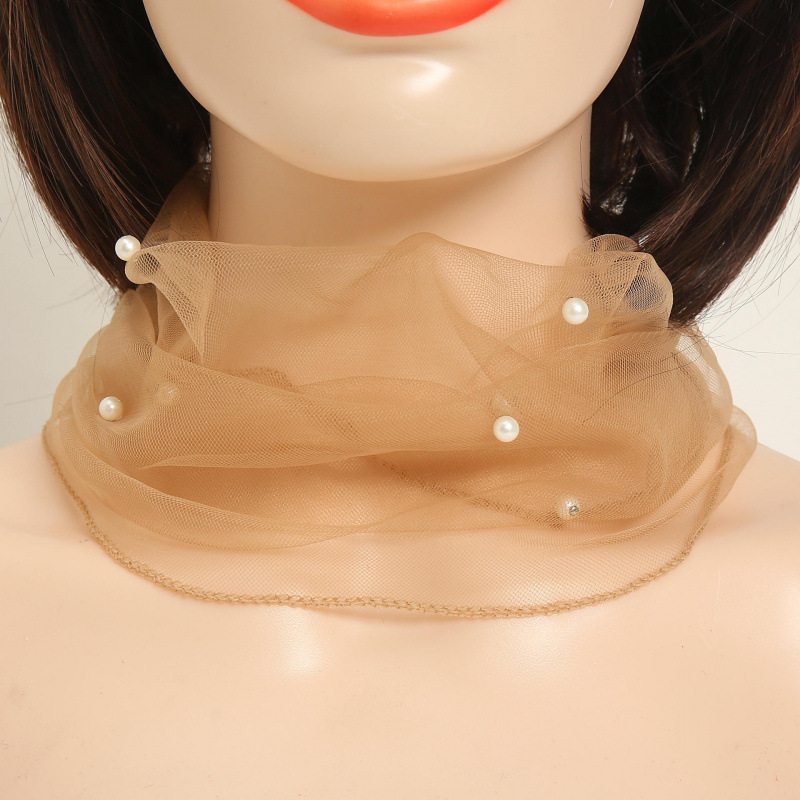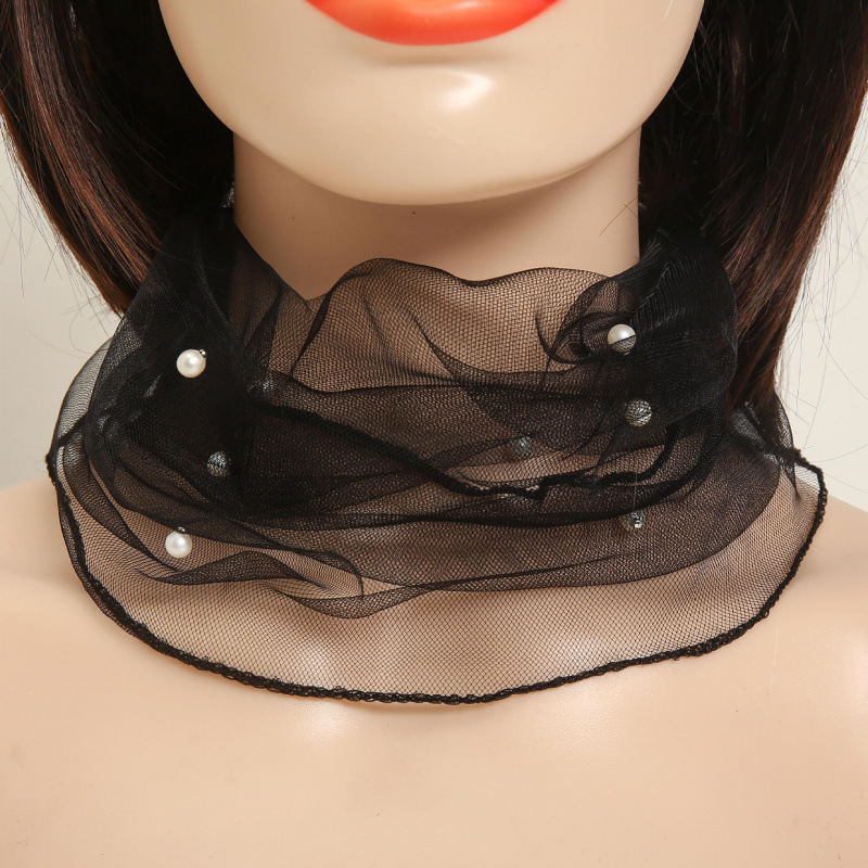 새로운 스타일의 구슬 장식 레이스 스카프, 봄 여름 메쉬 목 보호대, 햇빛 가리개 및 흉터 커버, 패셔너블하고 다재다능하며 가볍고 통기성이 뛰어난 실크 스카프 도매스토어 가기