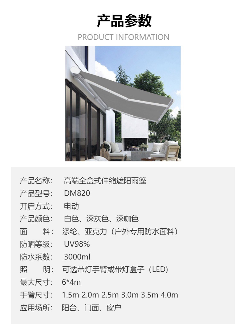 야외 알루미늄 합금 개폐식 천막 전체 상자 전기 천막 빌라 발코니 접이식 천막스토어 가기